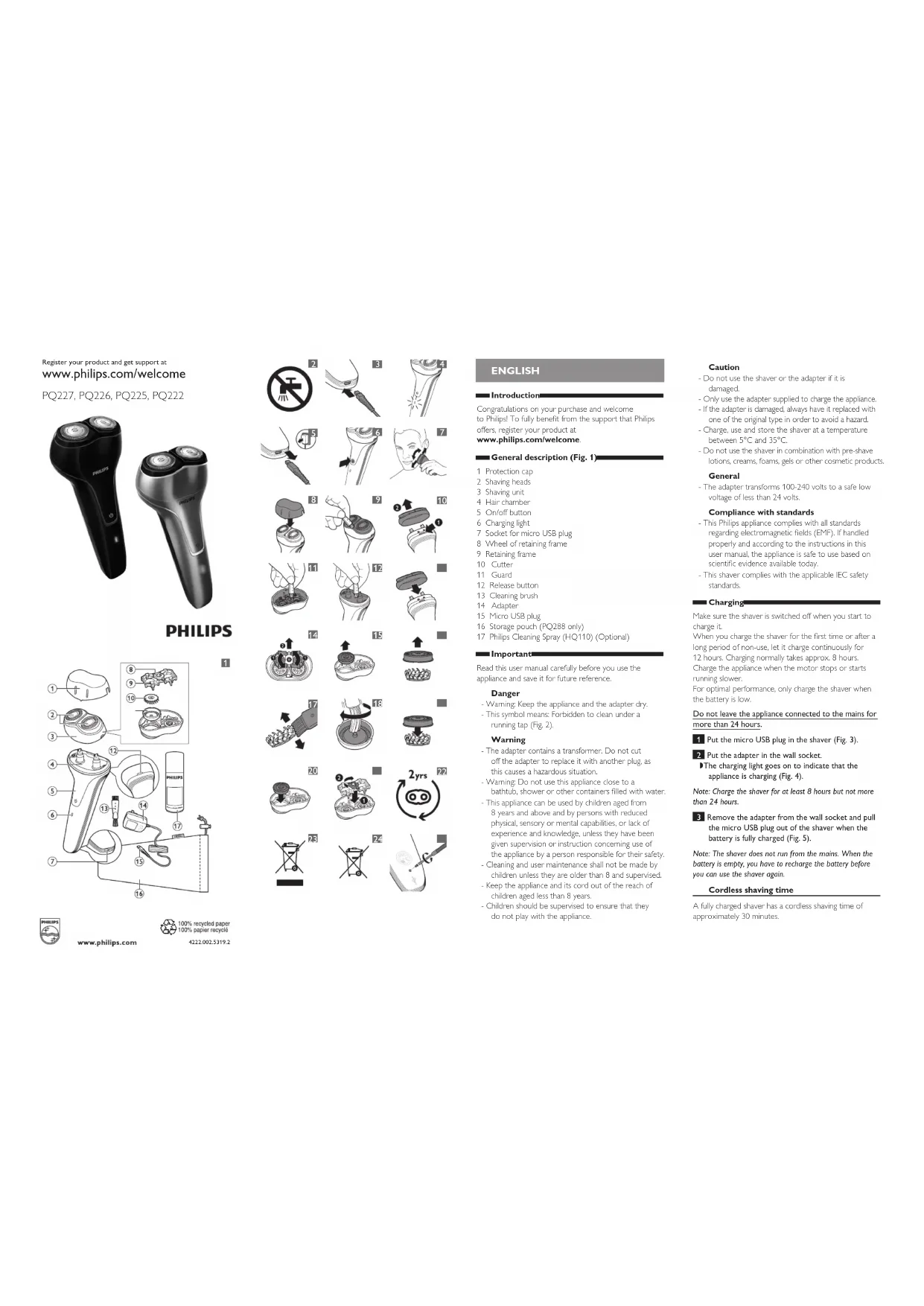 Retrouvez gratuitement la notice de l'appareil PQ225 PHILIPS au format PDF.