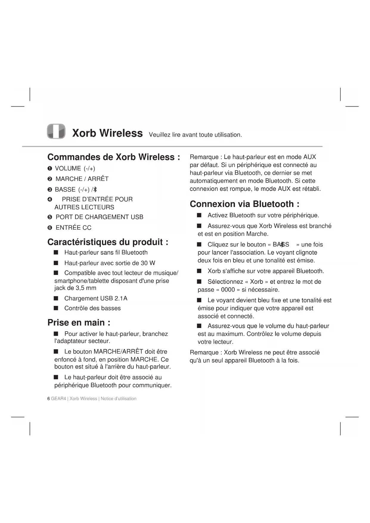 Xorb Wireless - Haut-parleur GEAR4 - Notice d'utilisation et mode d'emploi gratuit