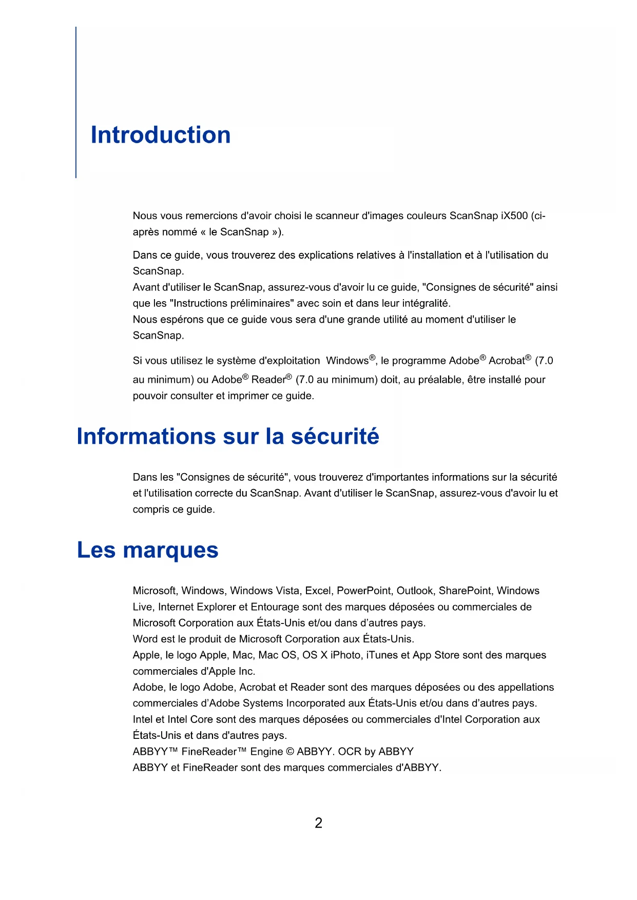 Nous vous remercions d'avoir choisi le scanneur d'images couleurs ScanSnap iX500 (ci-