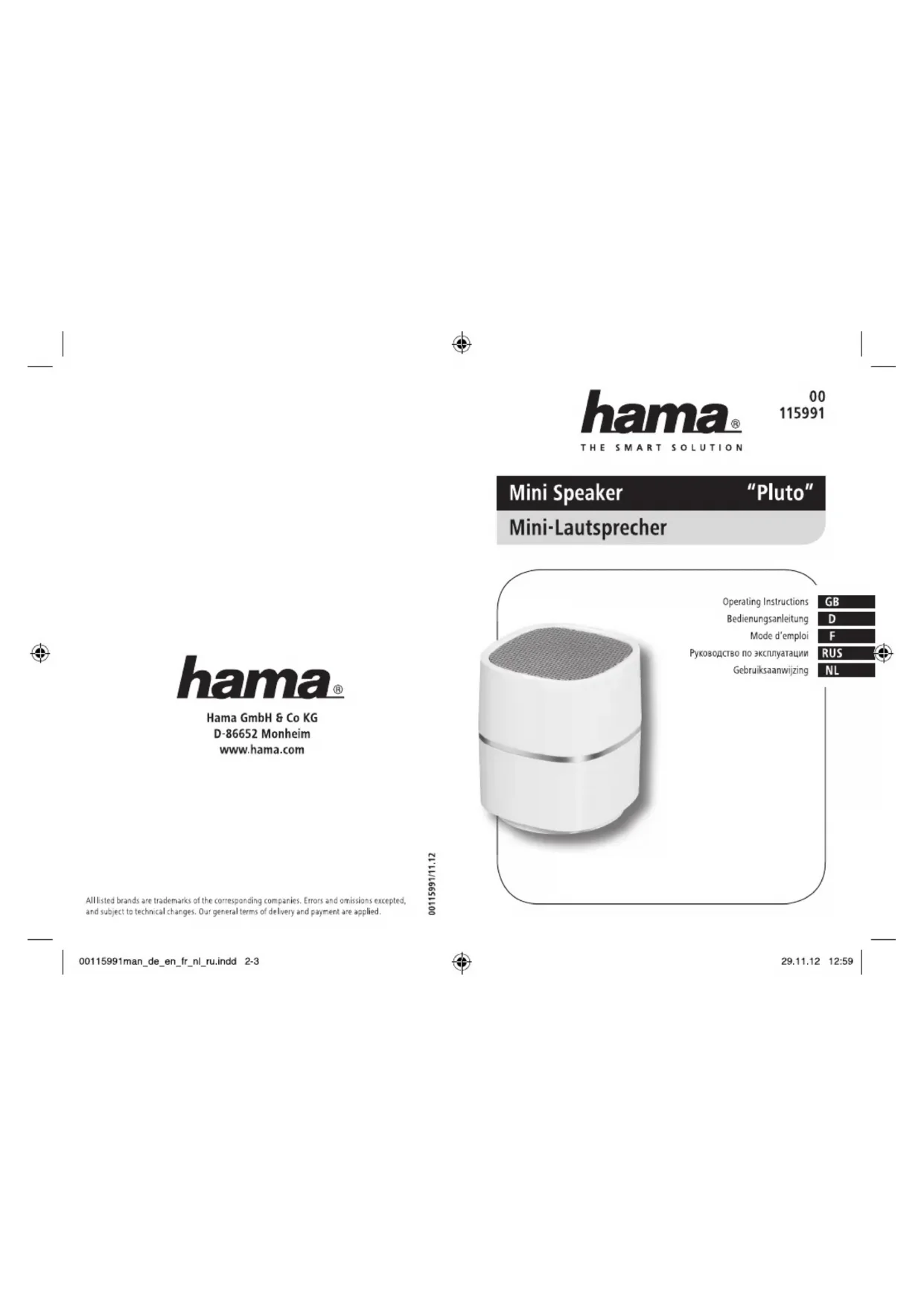 Pluto - Haut-parleur HAMA - Notice d'utilisation et mode d'emploi gratuit