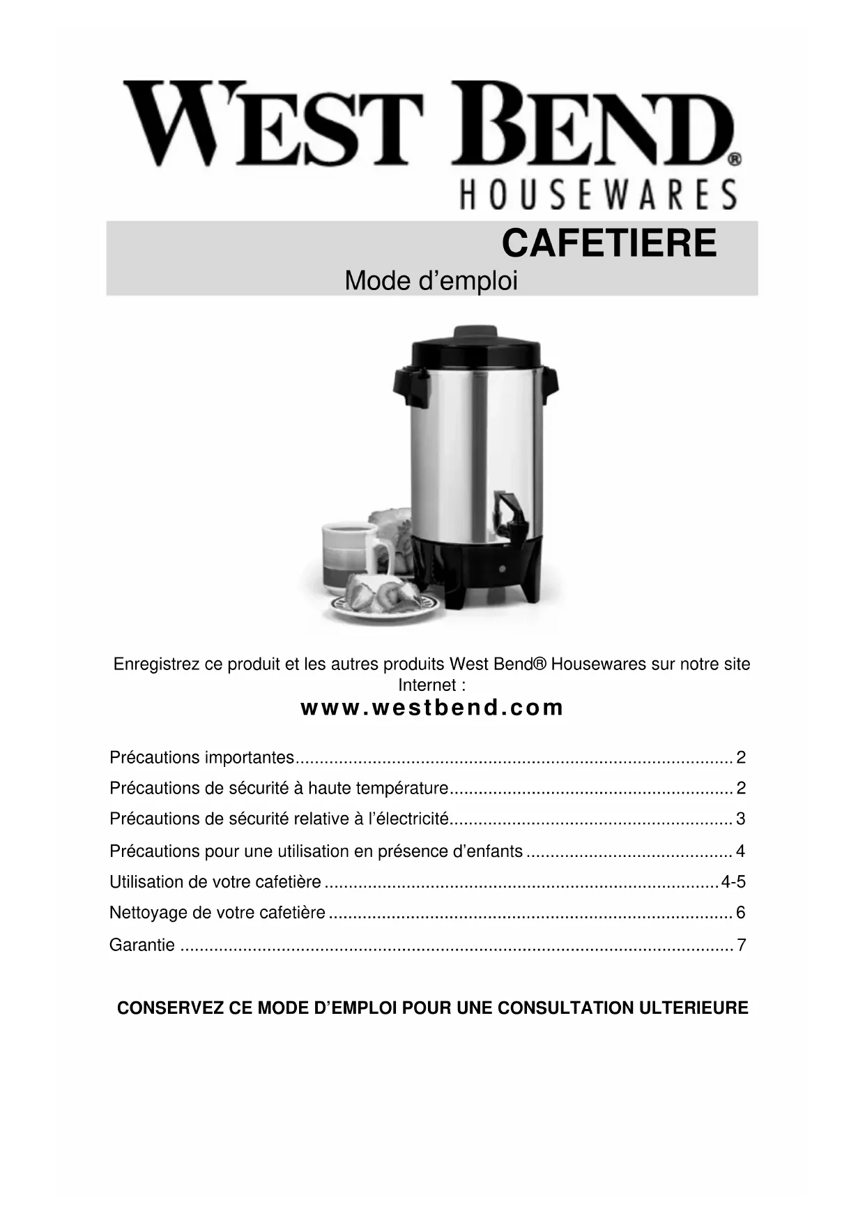 Enregistrez ce produit et les autres produits West Bend® Housewares sur notre site Internet :