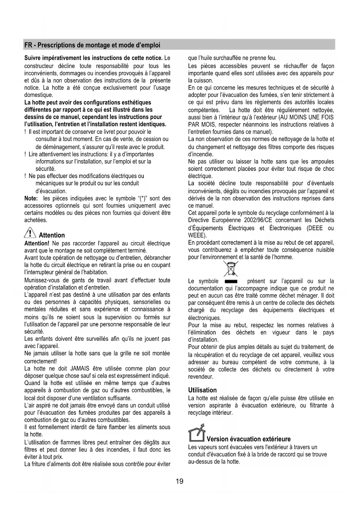 Ne jamais utiliser la hotte sans que la grille ne soit montée