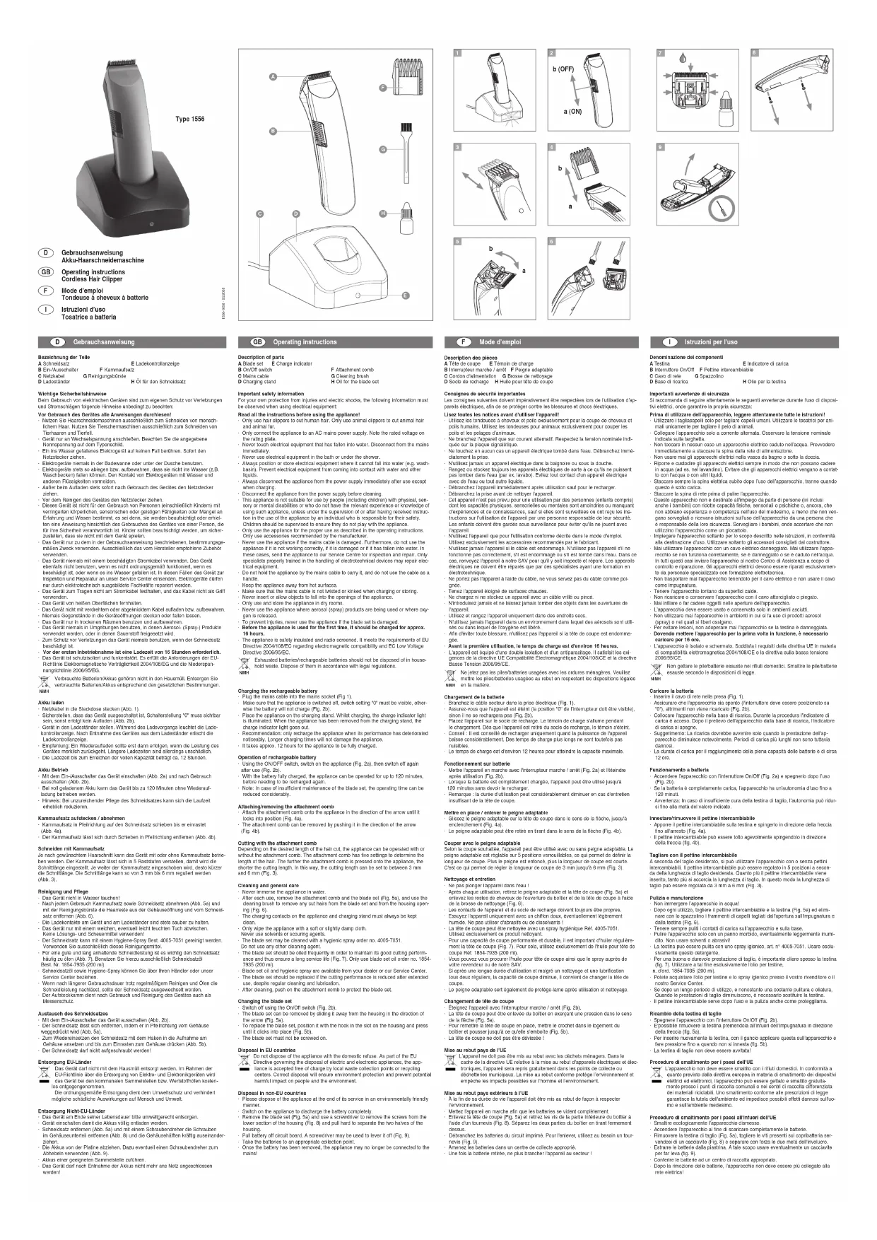Téléchargez la notice de votre Tondeuse à barbe au format PDF gratuitement ! Retrouvez votre notice 1556 - MOSER et reprennez votre appareil électronique en main. Sur cette page sont publiés tous les documents nécessaires à l'utilisation de votre appareil 1556 de la marque MOSER.