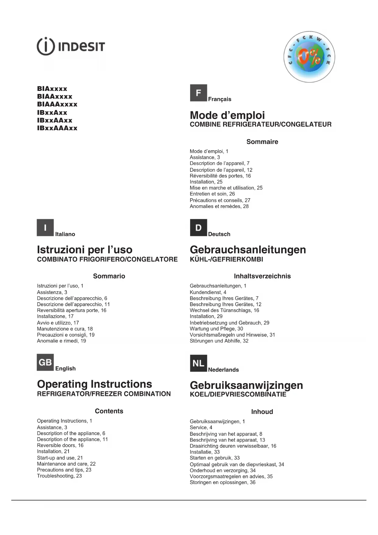 Téléchargez la notice de votre Réfrigérateur au format PDF gratuitement ! Retrouvez votre notice BIAA 34 F SI - INDESIT et reprennez votre appareil électronique en main. Sur cette page sont publiés tous les documents nécessaires à l'utilisation de votre appareil BIAA 34 F SI de la marque INDESIT.