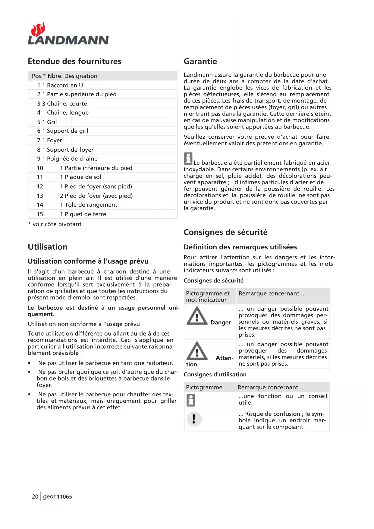 Geos 11065 - Barbecue LANDMANN - Notice d'utilisation et mode d'emploi gratuit