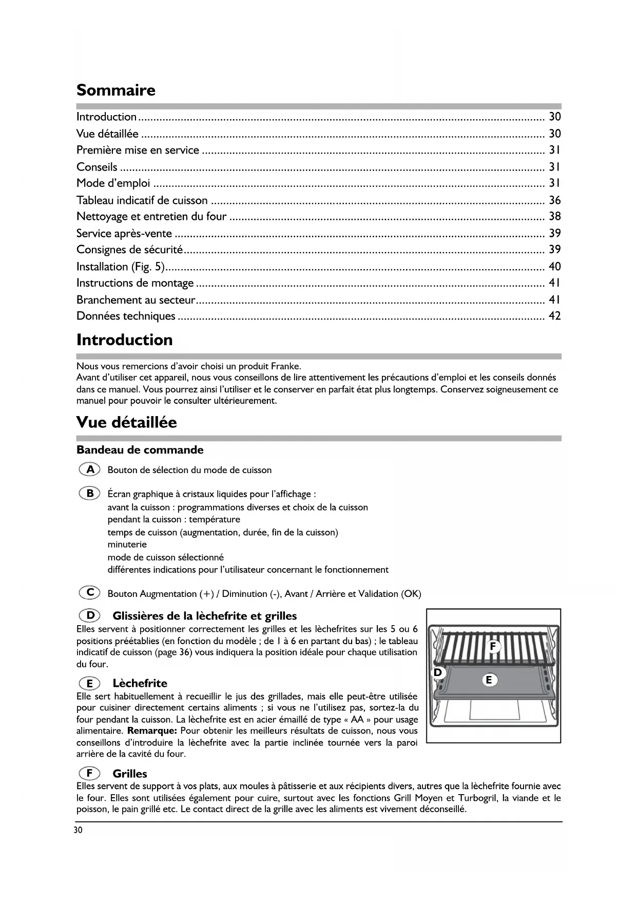 différents modes de cuisson. Pour que votre four Franke soit le plus performant possible, consultez le tableau indicatif