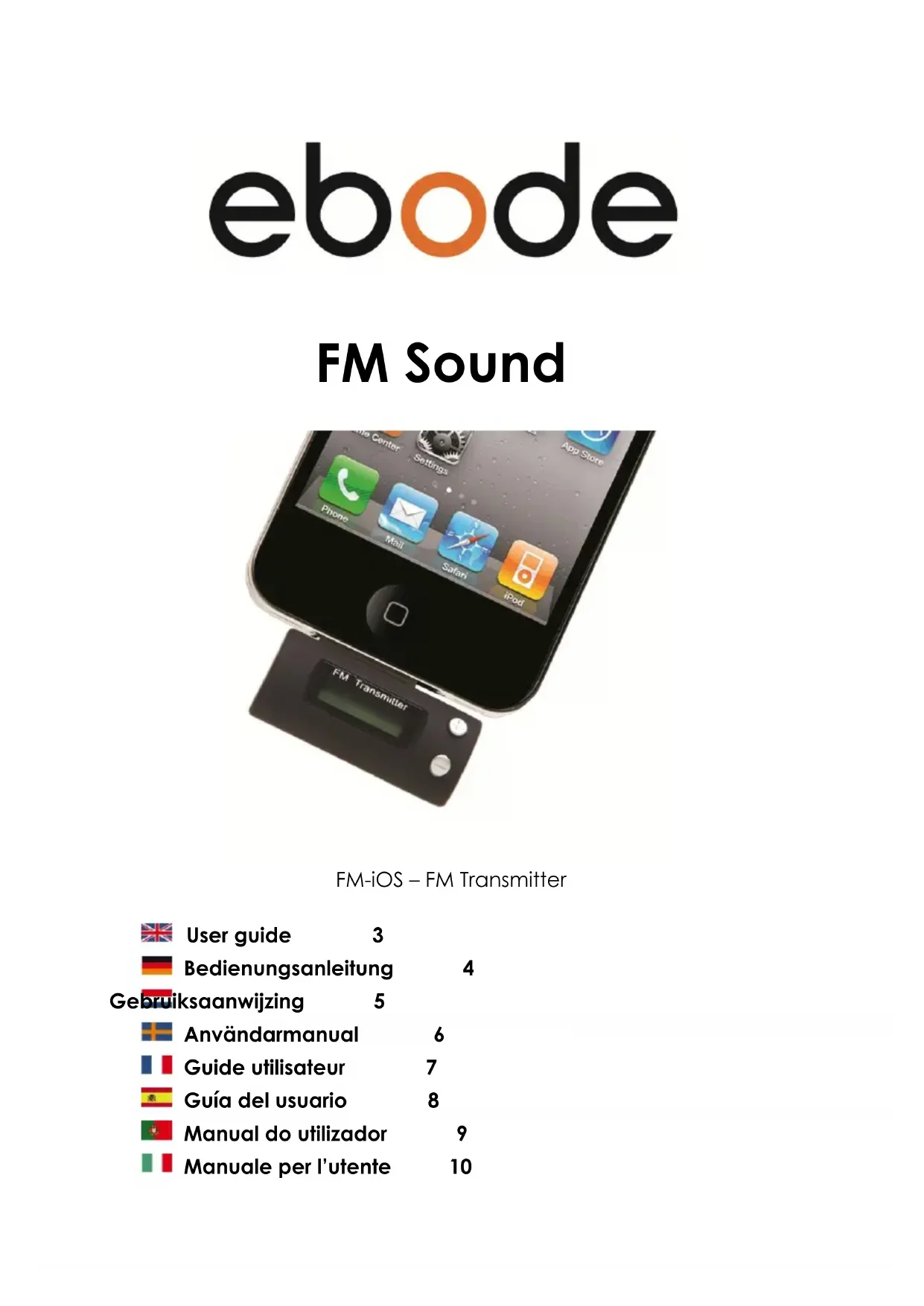 Merci d'avoir acheté l’ebode FM Sound. Maintenant vous pouvez écouter votre appareil Apple ® sur votre (auto) radio.