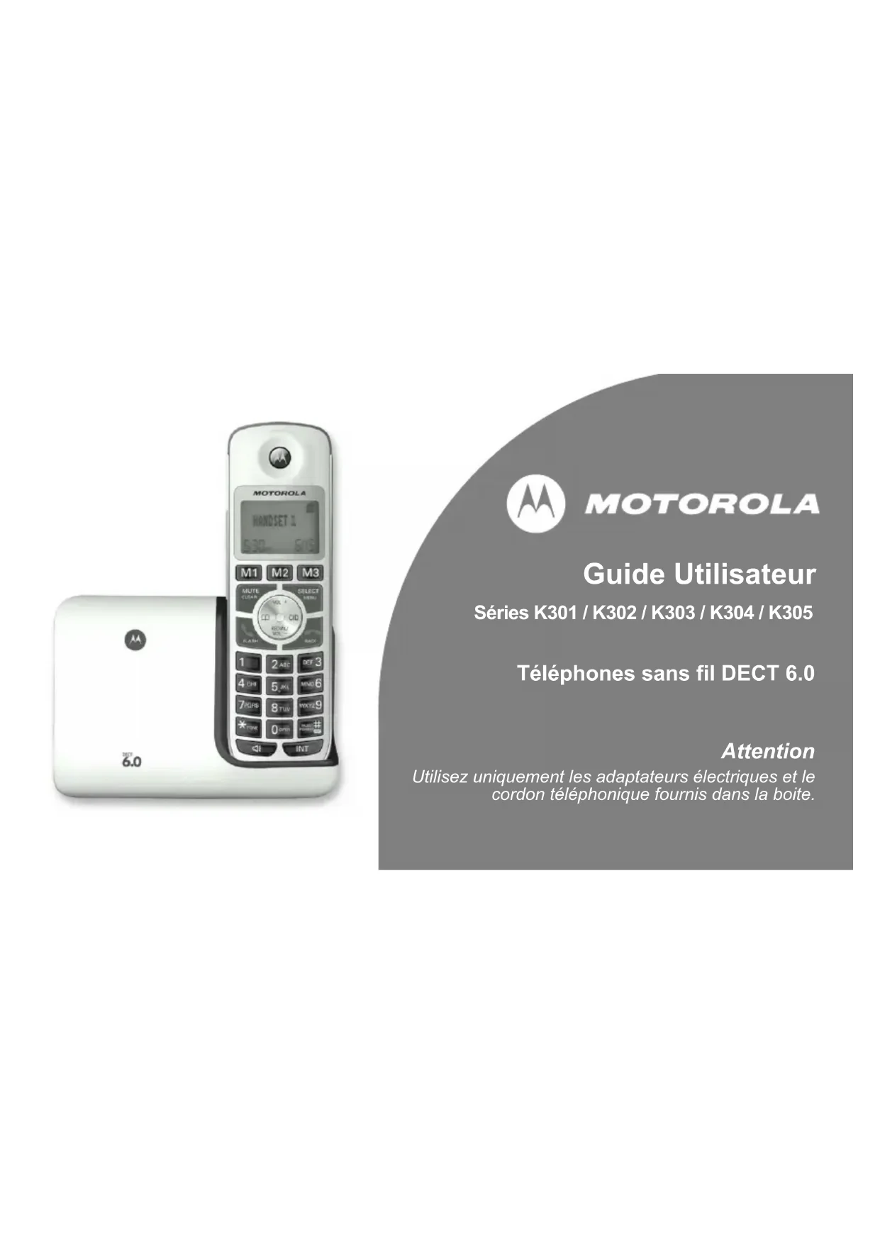 K301 - Téléphone MOTOROLA - Notice d'utilisation et mode d'emploi gratuit