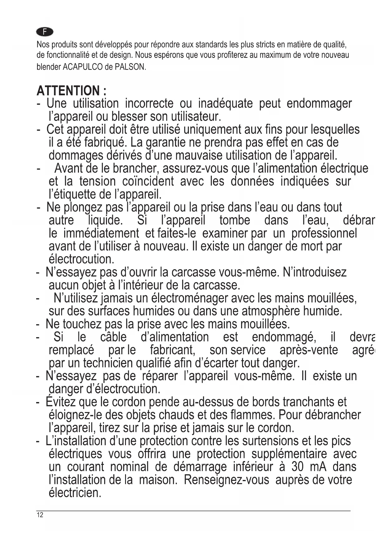 Acapulco - Blender PALSON - Notice d'utilisation et mode d'emploi gratuit