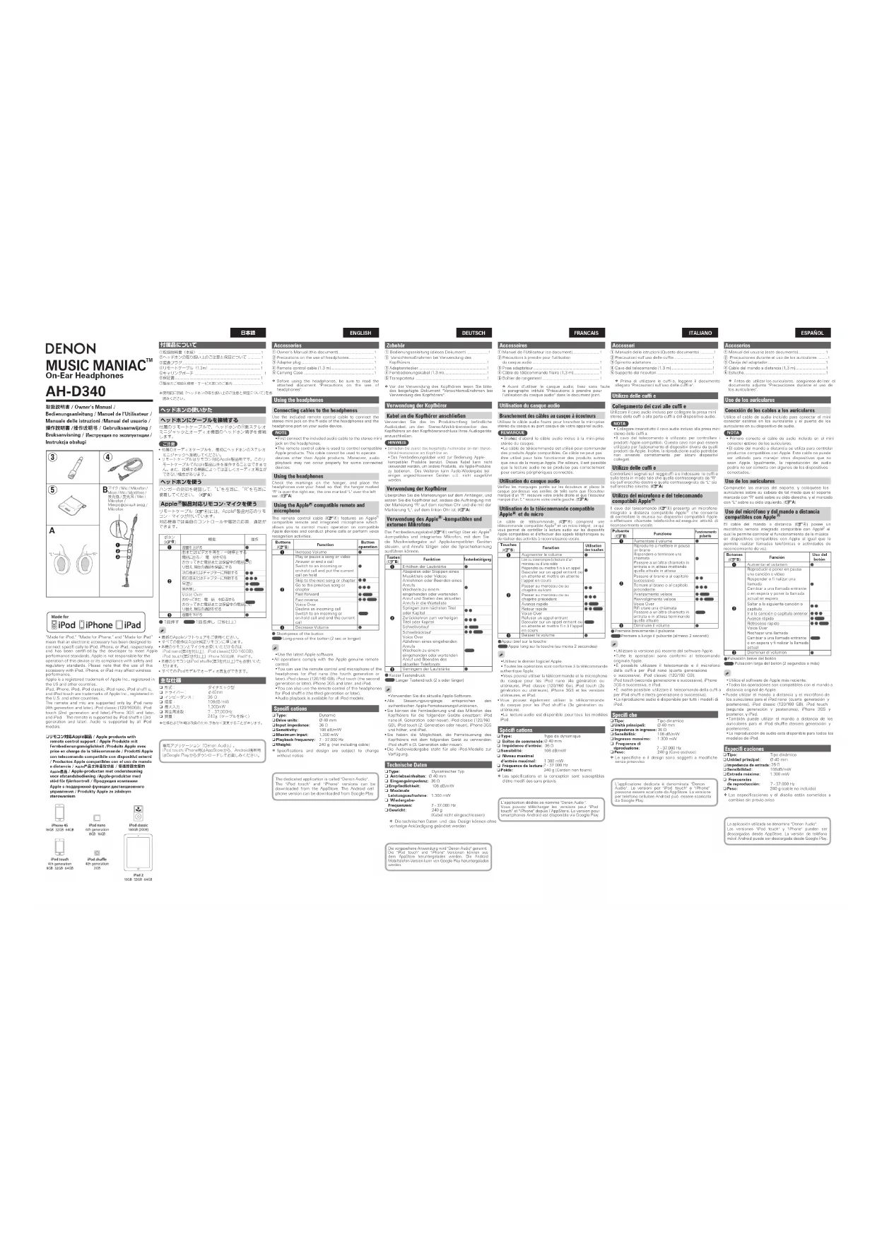 Téléchargez la notice de votre Ecouteur au format PDF gratuitement ! Retrouvez votre notice AHD340 - DENON et reprennez votre appareil électronique en main. Sur cette page sont publiés tous les documents nécessaires à l'utilisation de votre appareil AHD340 de la marque DENON.