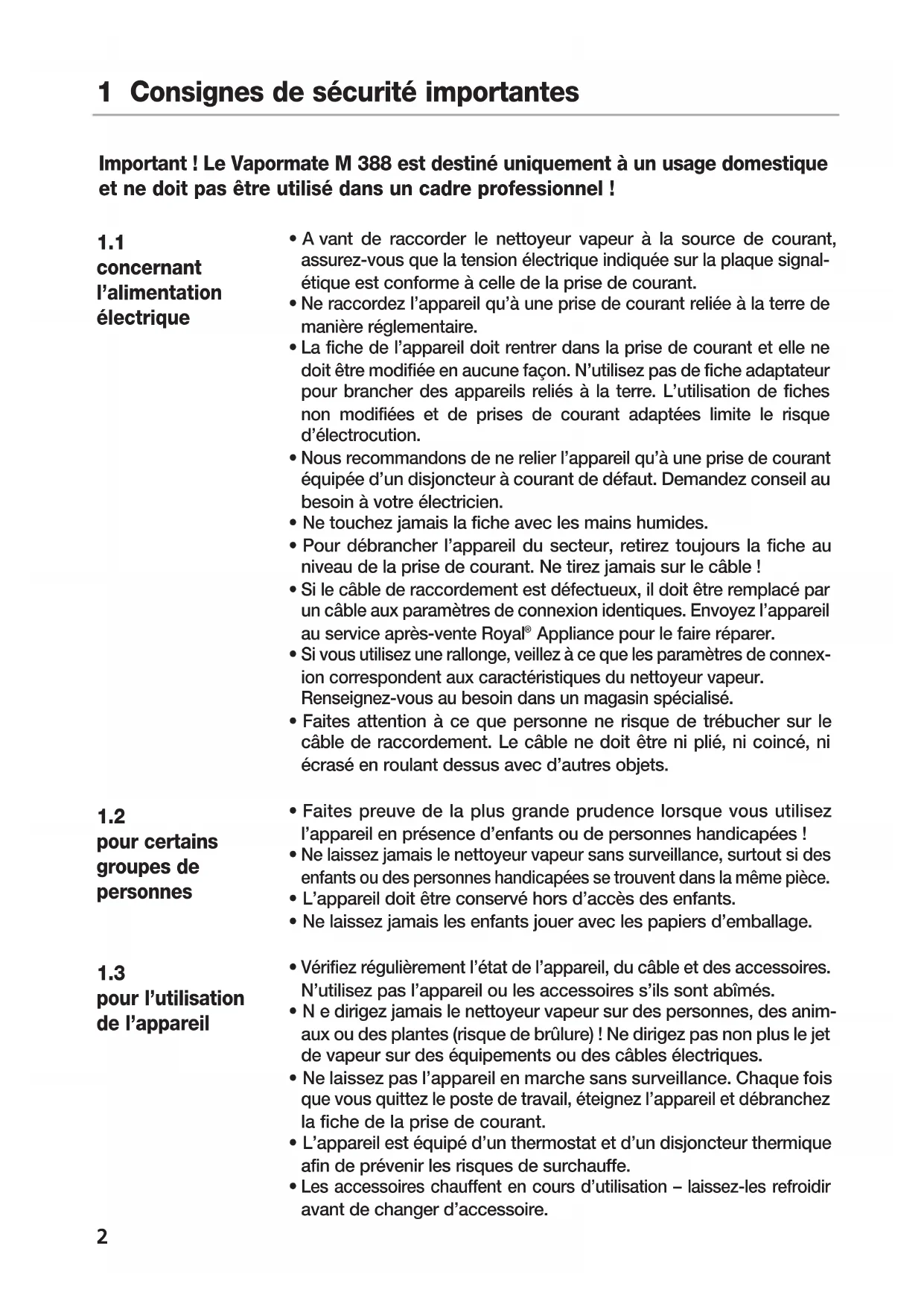 - Faites preuve de la plus grande prudence lorsque vous utilisez l’appareil en présence d’enfants ou de personnes handicapées !