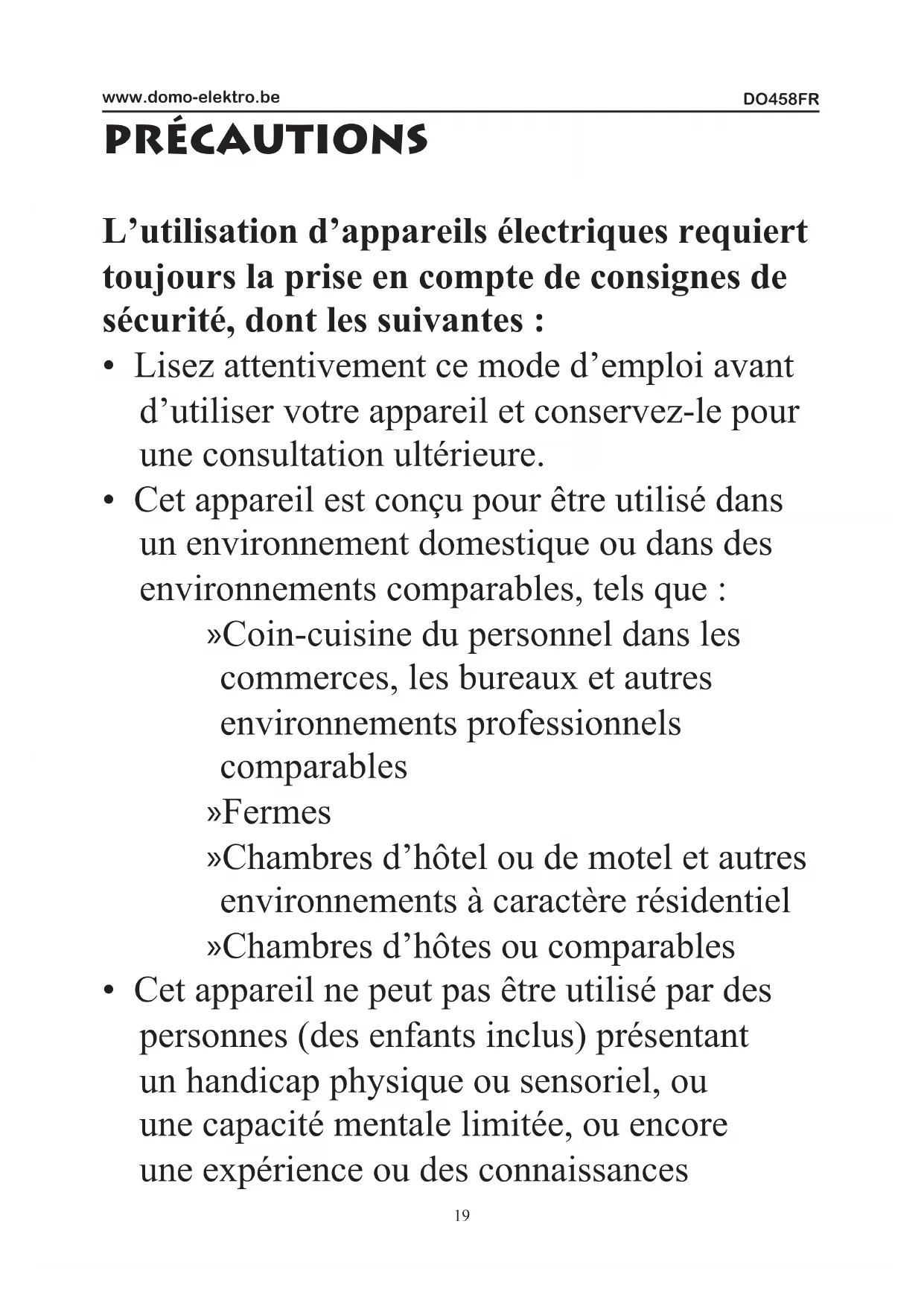 MODE D'EMPLOI DO458FR DOMO