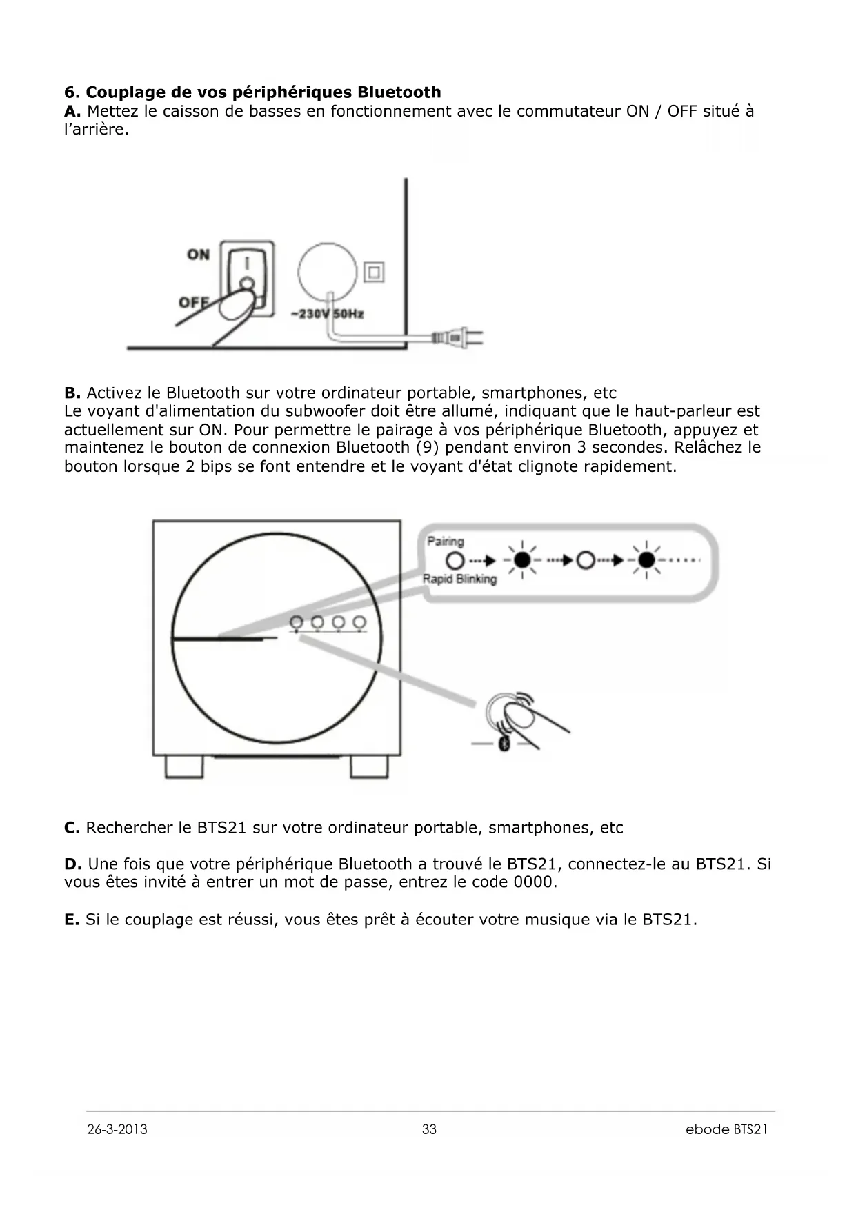 Retrouvez gratuitement la notice de l'appareil BTS21 EBODE au format PDF.