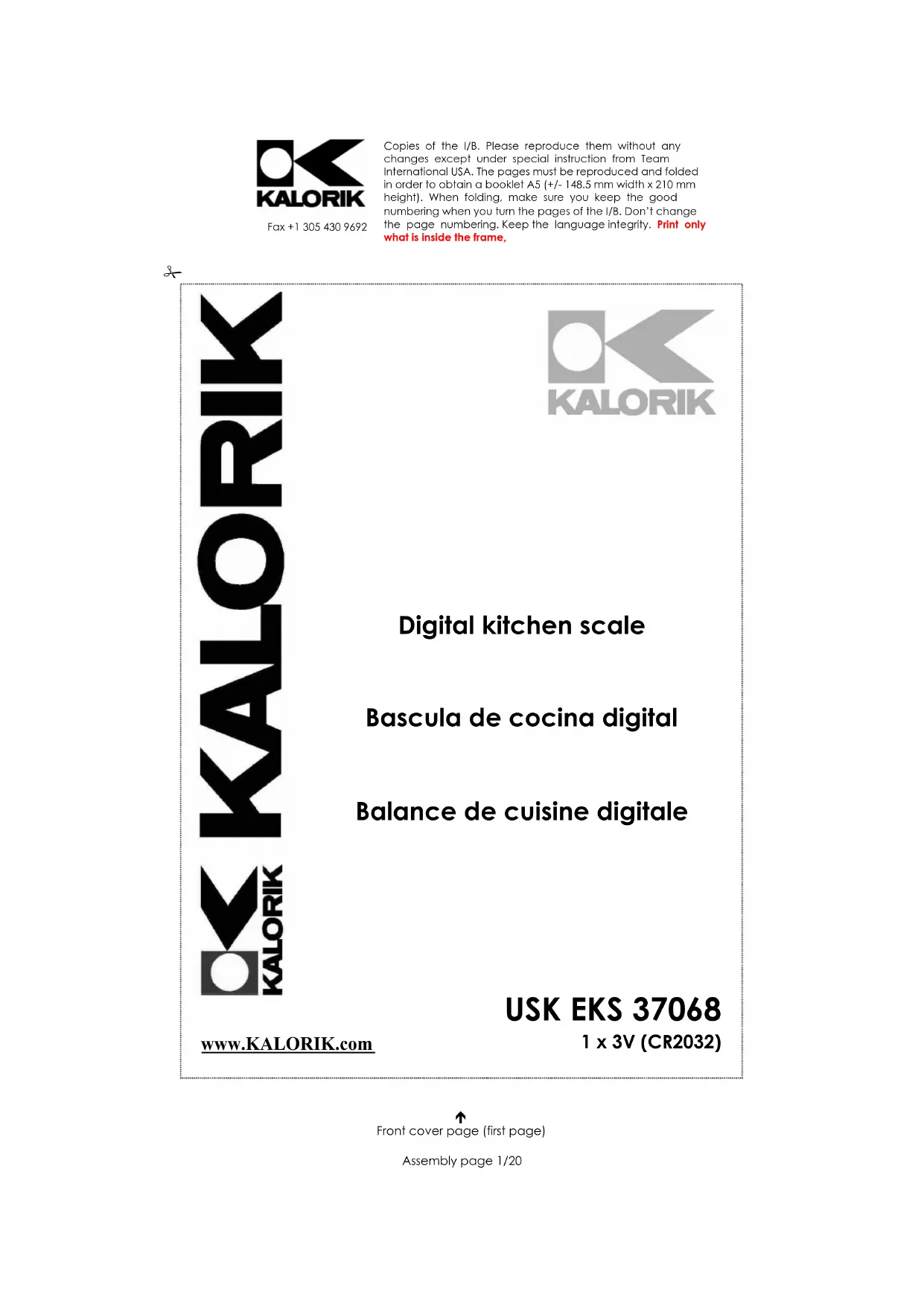 EKS 37068 - Balances de cuisine KALORIK - Notice d'utilisation et mode d'emploi gratuit