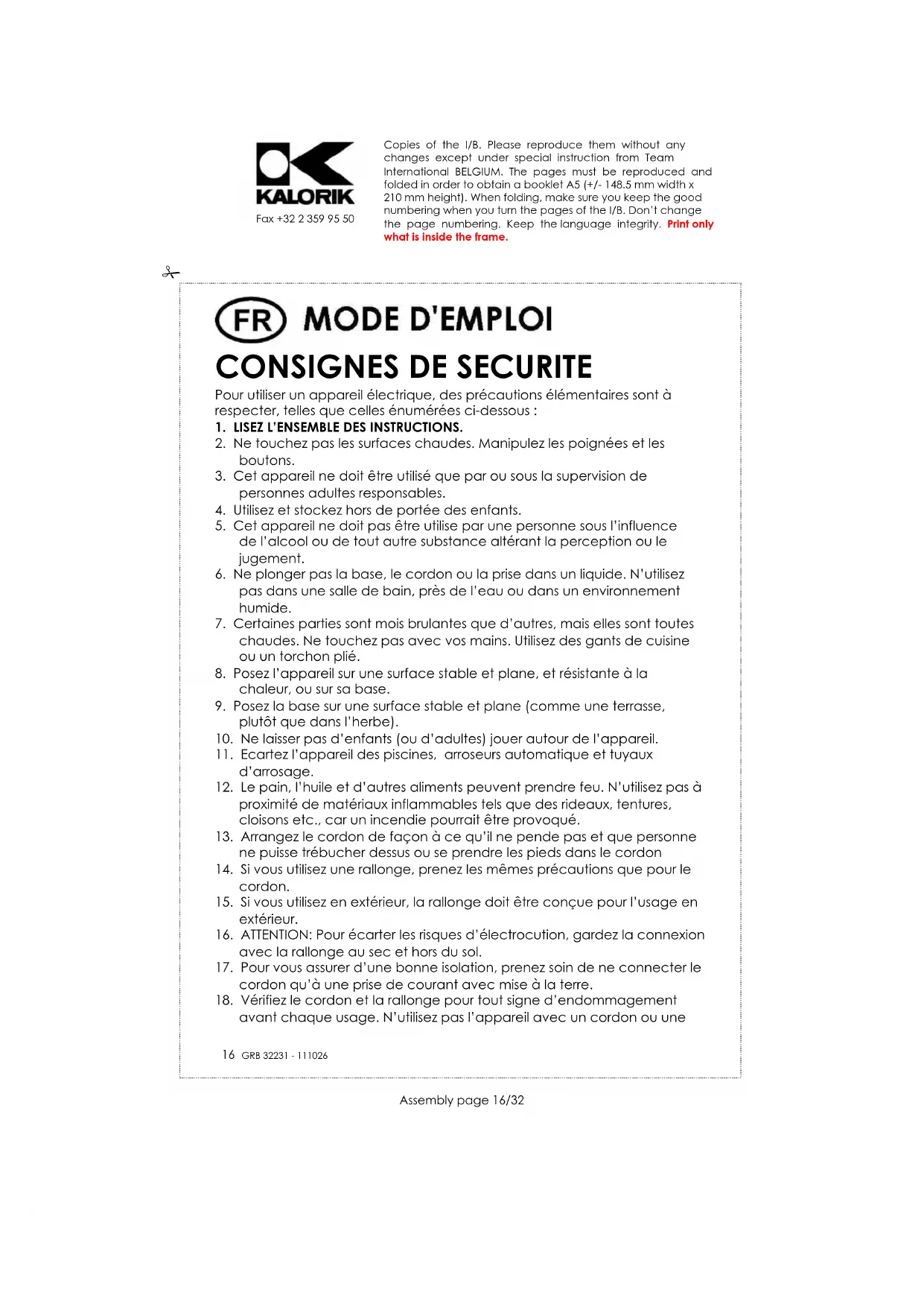 Retrouvez gratuitement la notice de l'appareil GRB32231S KALORIK au format PDF.