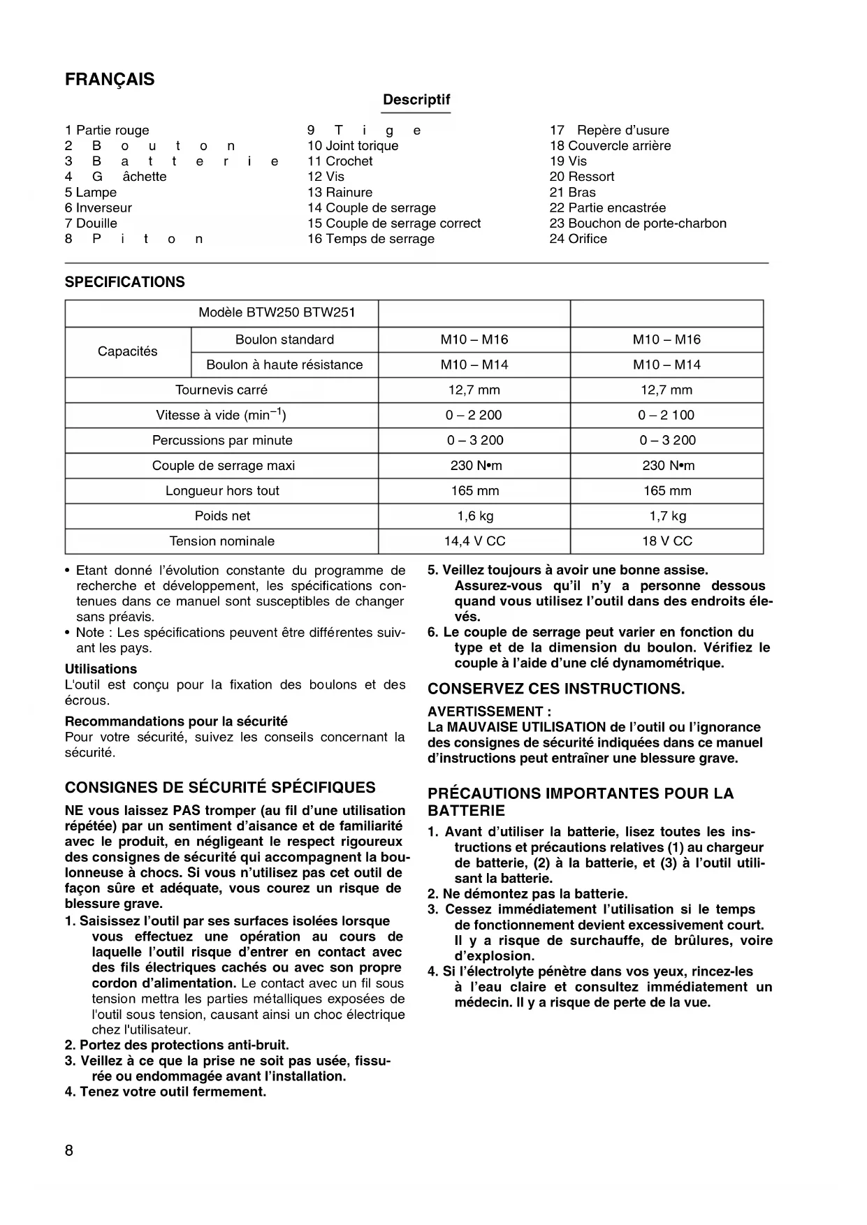 MODE D'EMPLOI BTW250 MAKITA