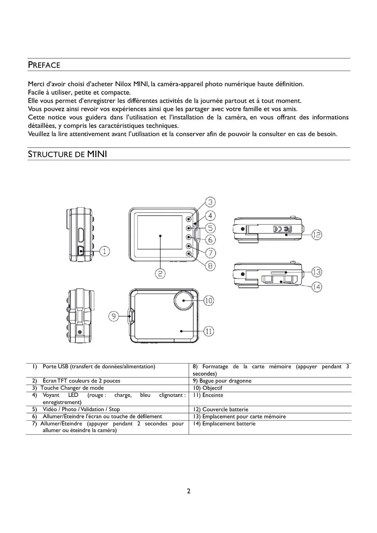 PREFACE Merci d’avoir choisi d’acheter Nilox MINI, la caméra-appareil photo numérique haute définition.