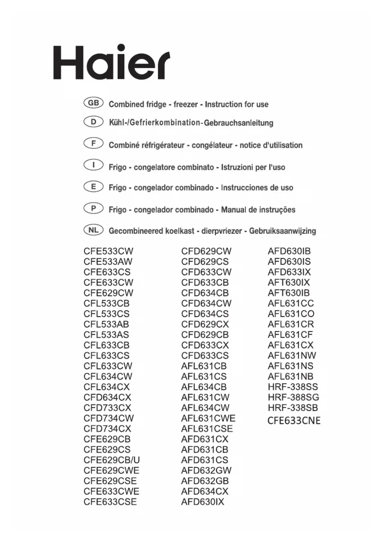 CFE633CWE - Réfrigérateur HAIER - Notice d'utilisation et mode d'emploi gratuit