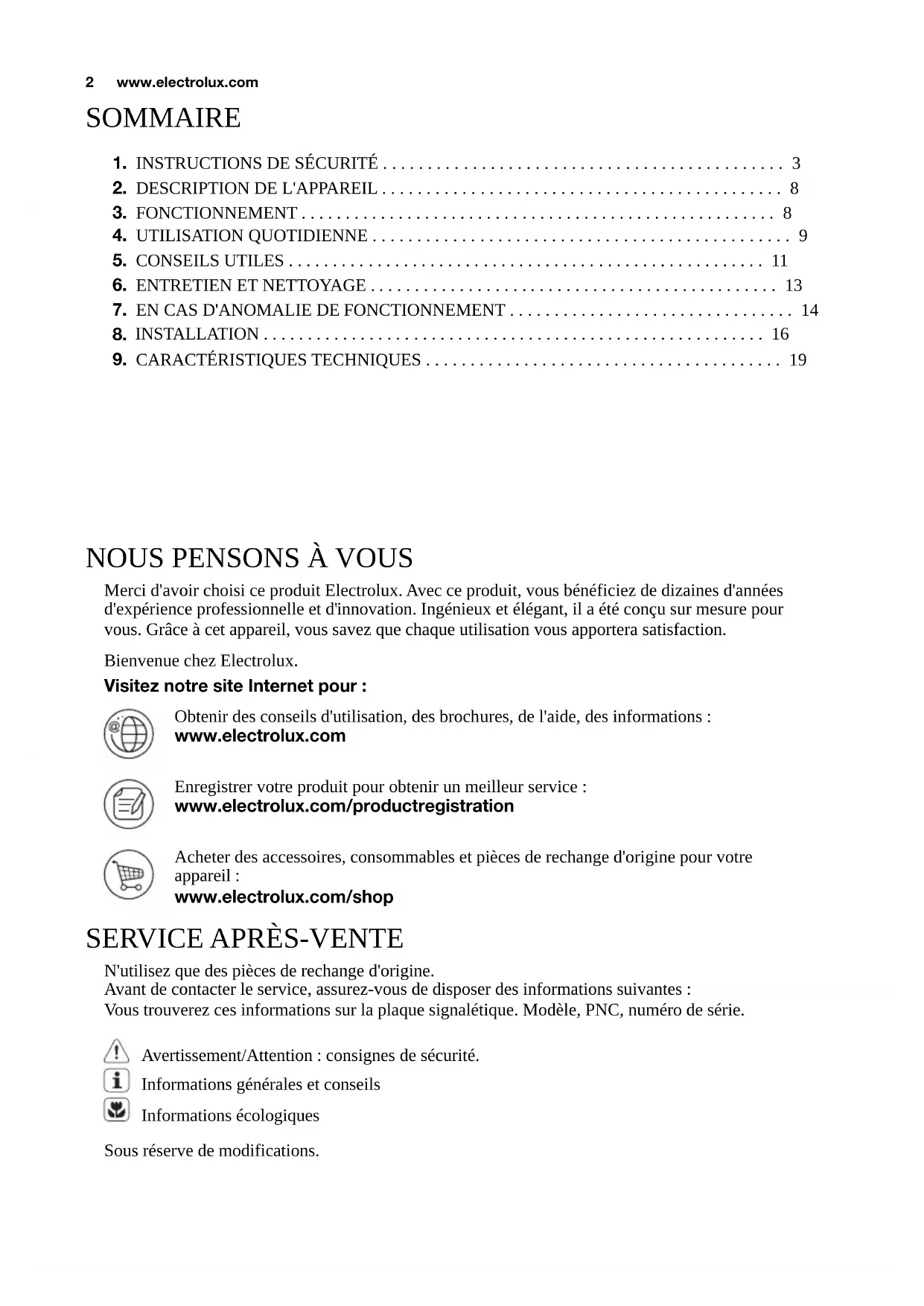 NOUS PENSONS À VOUS Merci d'avoir choisi ce produit Electrolux. Avec ce produit, vous bénéficiez de dizaines d'années