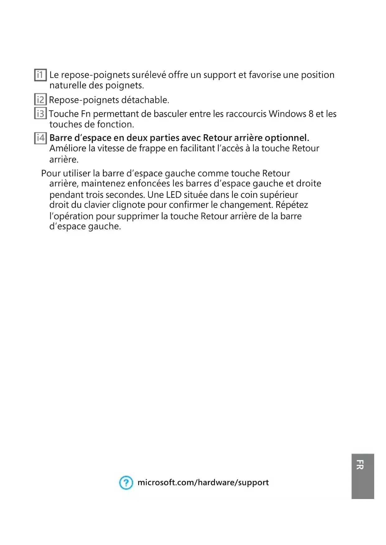 | Informations supplémentaires | Facilité d'installation, logiciel Microsoft Mouse and Keyboard Center disponible |