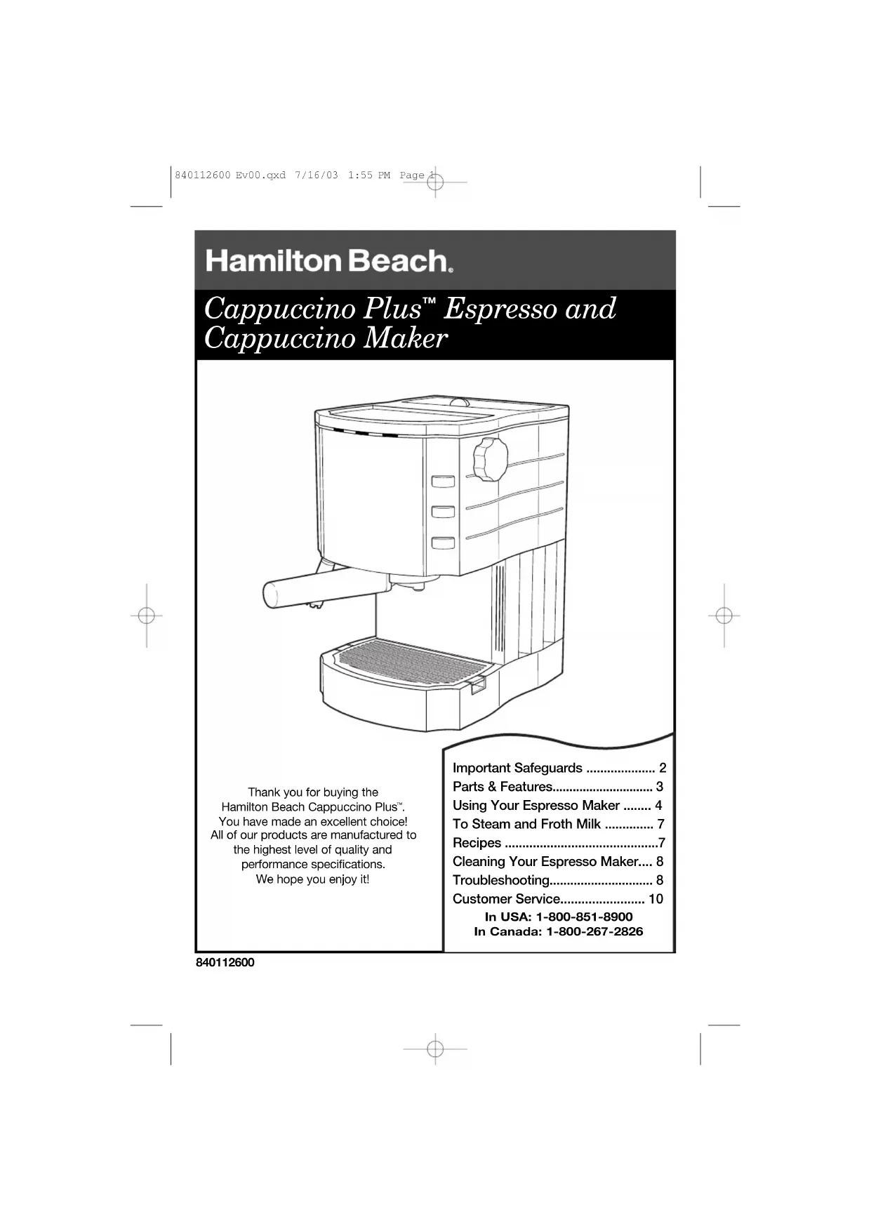Retrouvez gratuitement la notice de l'appareil 40729 HAMILTON BEACH au format PDF.