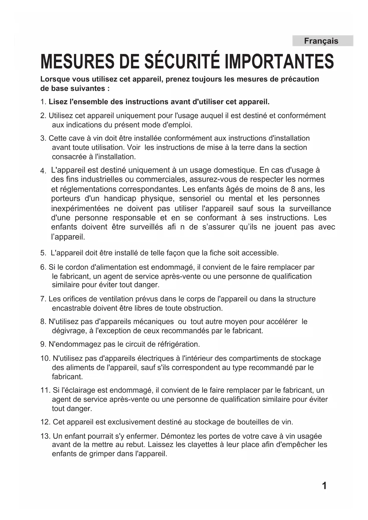 1. Lisez l'ensemble des instructions avant d'utiliser cet appareil.