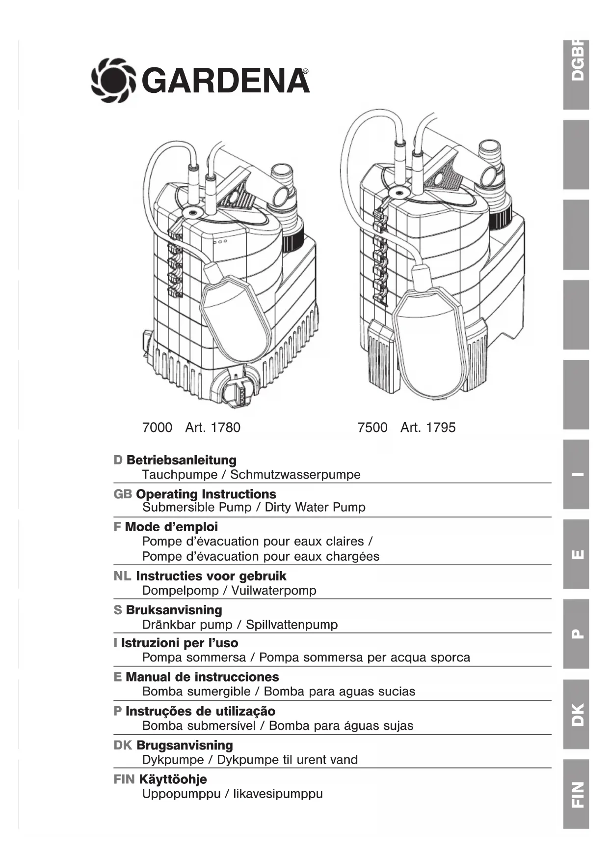 Classic 7500 - Pompe à eau GARDENA - Notice d'utilisation et mode d'emploi gratuit