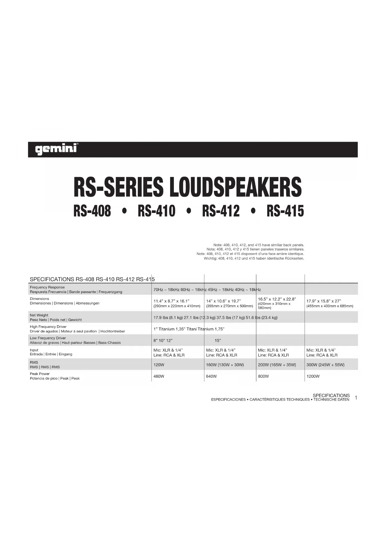 RS408 - Haut-parleur GEMINI - Notice d'utilisation et mode d'emploi gratuit