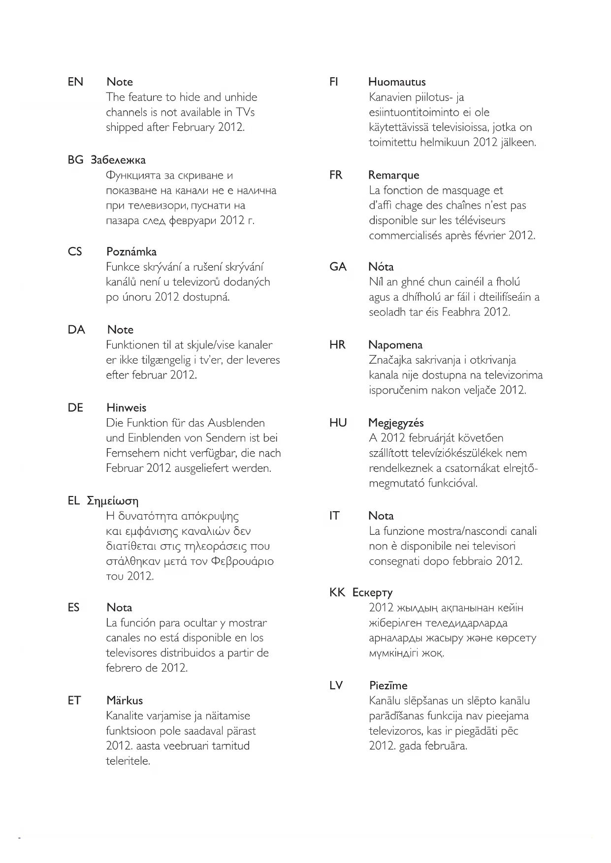 channels is not available in TVs