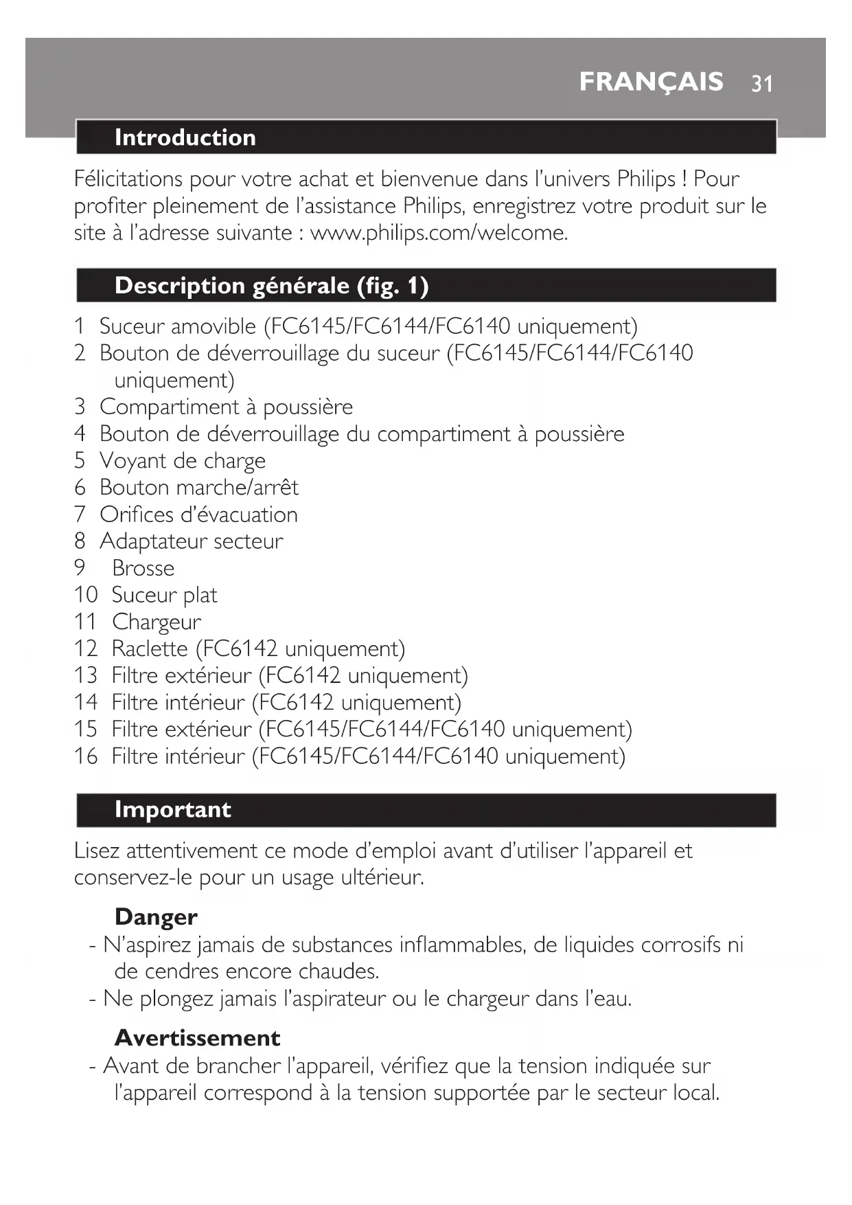 Retrouvez gratuitement la notice de l'appareil MiniVac FC6145 PHILIPS au format PDF.