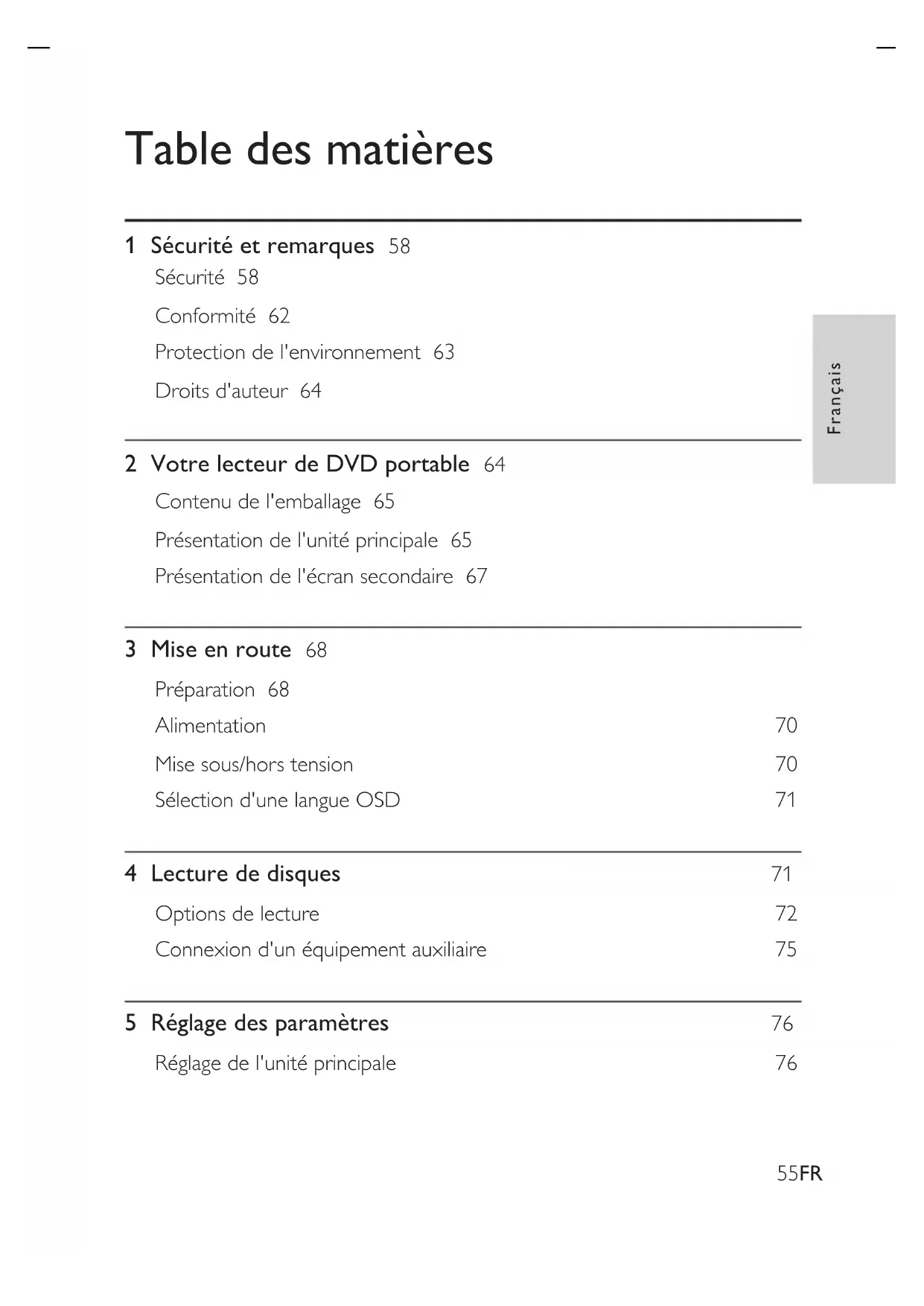 *Avis sur la sécurité des produits *Bénéces additionnels En enregistrant votre produit, vous serez avisé - directement par le fabriquant.L’enregistrement de votre produit garantit que vous bénécie-rez de tous les privilèges auxquels vous avez droit y compris des offres-rabais spéciales.Nous vous félicitons de votre achat et vous souhaitons la bienvenue dans la « famille »!Cher propriétaire d’un produit PHILIPS :Merci de votre conance en PHILIPS. Vous avez choisi un produit de fabrication et de garantie supérieures parmi les meilleurs disponibles sur le marché. Et nous ferons tout en notre pouvoir pour que vous soyez pleinement satisfait de votre achat pour des années à venir.En tant que membre de la « famille » PHILIPS, vous avez droit à une protection inégalée par l’une des garanties les plus complètes de l’industrie.De plus, votre achat garantit que vous recevrez toutes les informations et offres spéciales auxquelles vous avez droit, ainsi qu’un accès facile à toute une gamme d’accessoires disponibles via notre réseau de téléachat.Mais ce qui est encore plus important, vous pouvez compter sur notre engagement total quand il s’agit de votre entière satisfaction. C’est notre façon de vous souhaiter la bienvenue et de vous remercier de votre investissement dans un produit PHILIPS.P.S. Pour bénécier au maximum de votre produit PHILIPS, assurez-vous de vous enregistrez en ligne àwww.philips.com/welcome