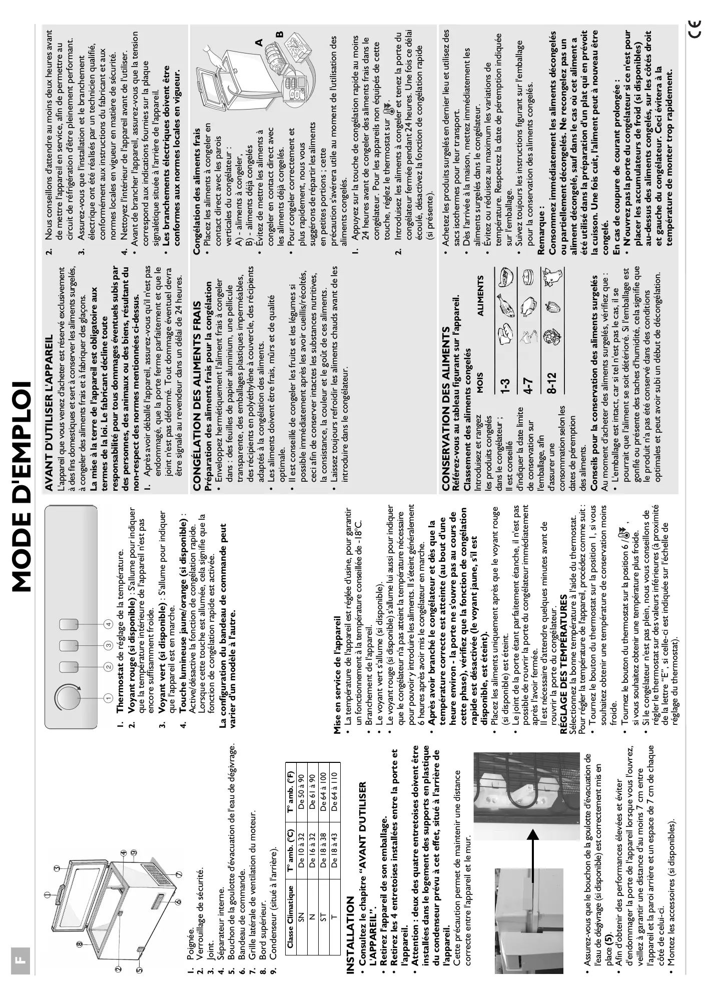 - Installez l'appareil et mettez-le de niveau sur un sol en mesure artificiellement l'intérieur du congélateur. congélation rapide (si présente) ? de supporter son poids, dans un endroit adapté à ses