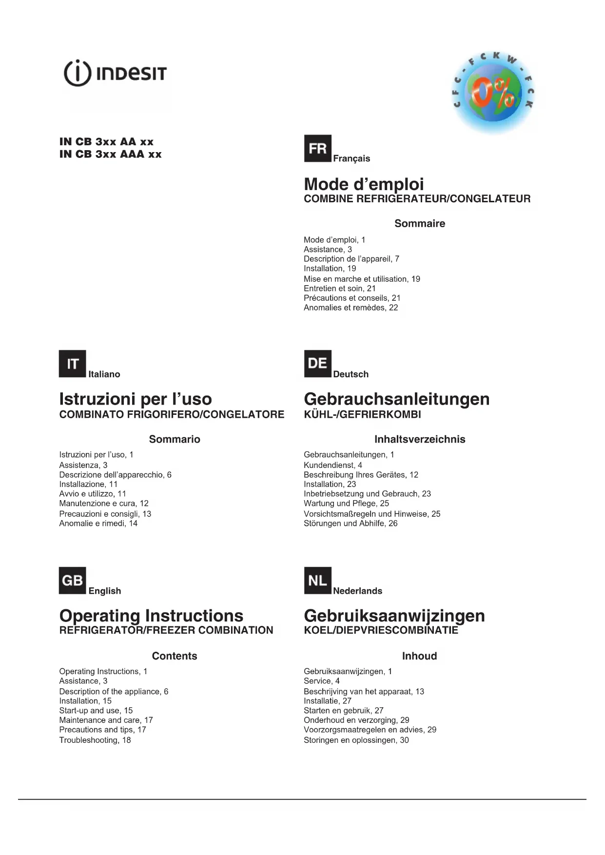 IN CB 31 AAA - Réfrigérateur INDESIT - Notice d'utilisation et mode d'emploi gratuit