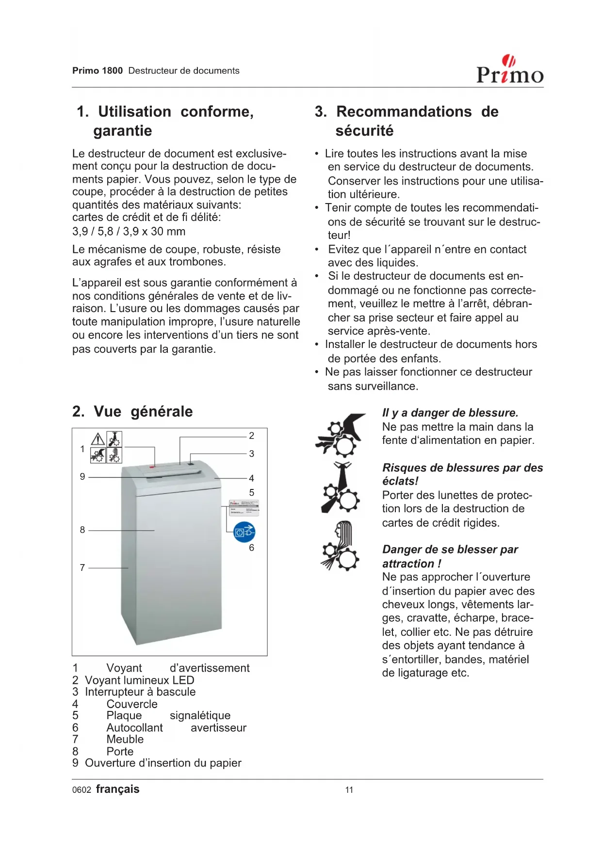1800 Office - Destructeur de document PRIMO - Notice d'utilisation et mode d'emploi gratuit