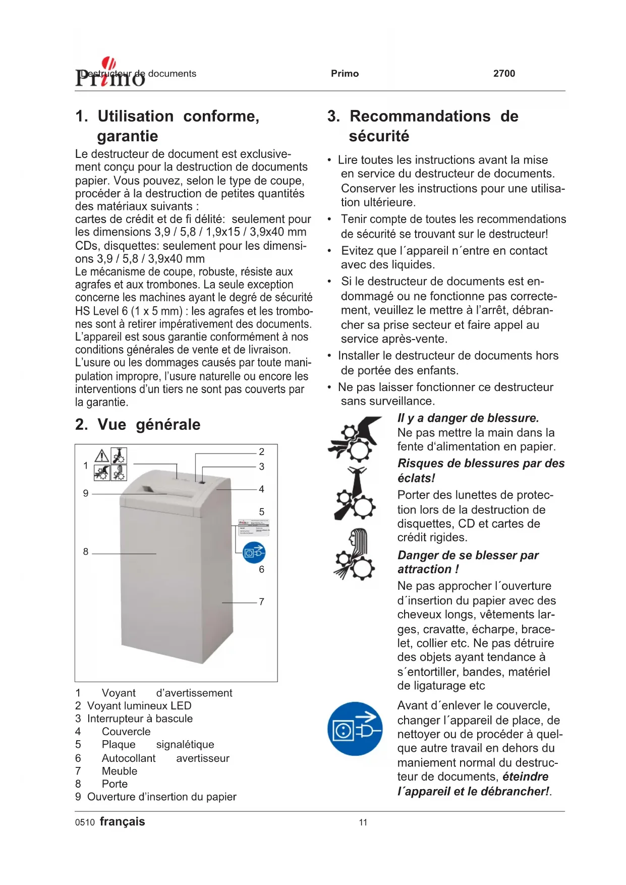 2700 Office - Destructeur de document PRIMO - Notice d'utilisation et mode d'emploi gratuit