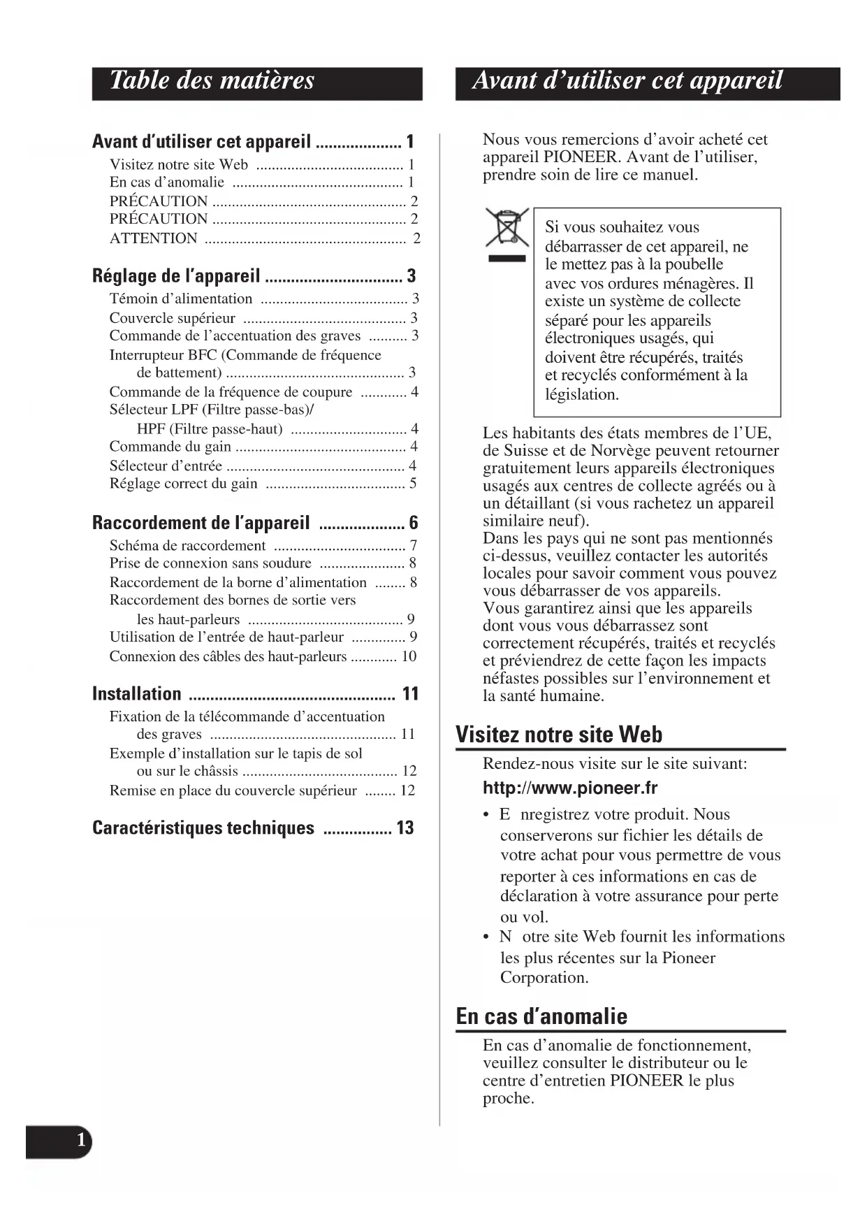 appareil PIONEER. Avant de l’utiliser,