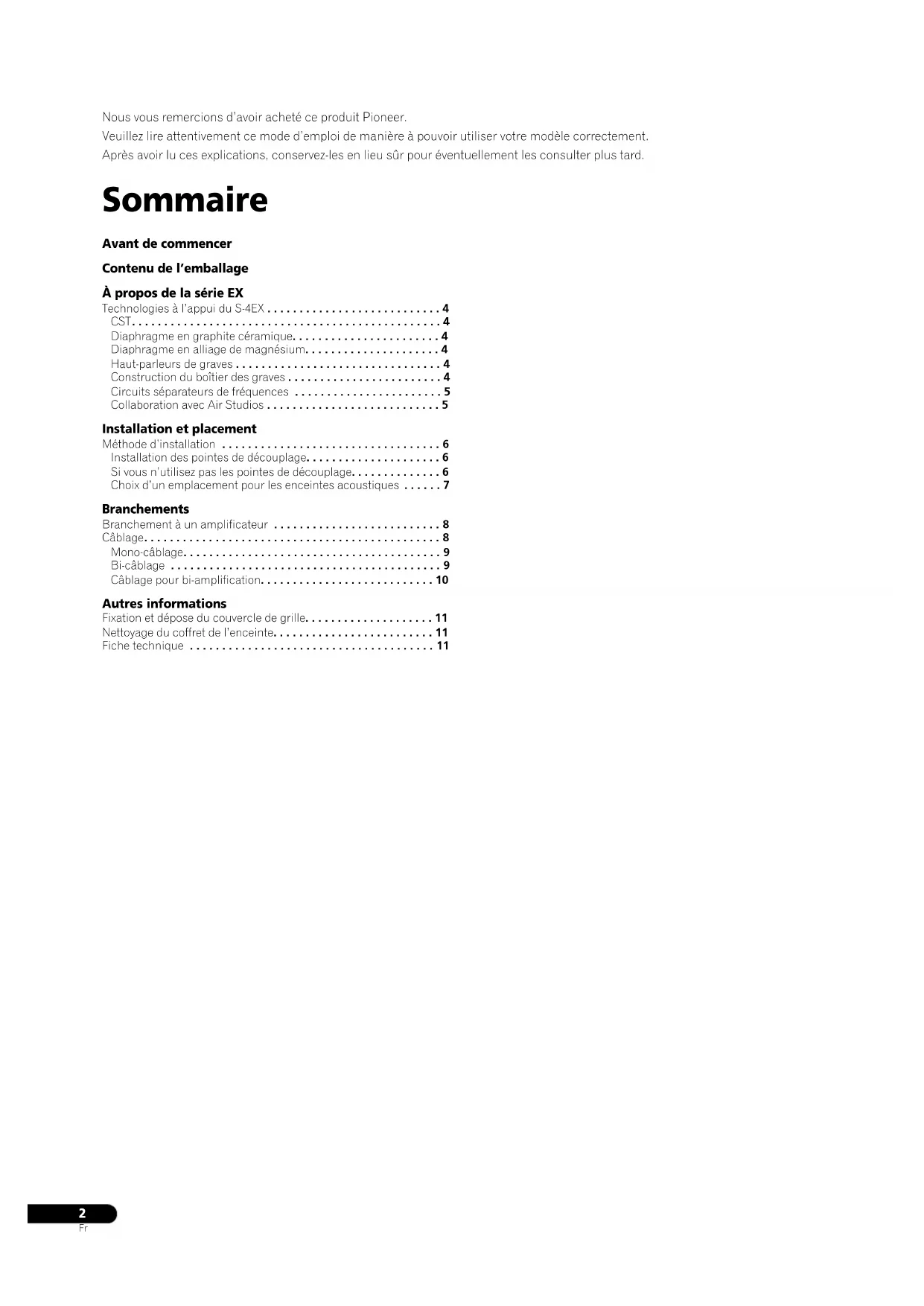 Nous vous remercions d’avoir acheté ce produit Pioneer.