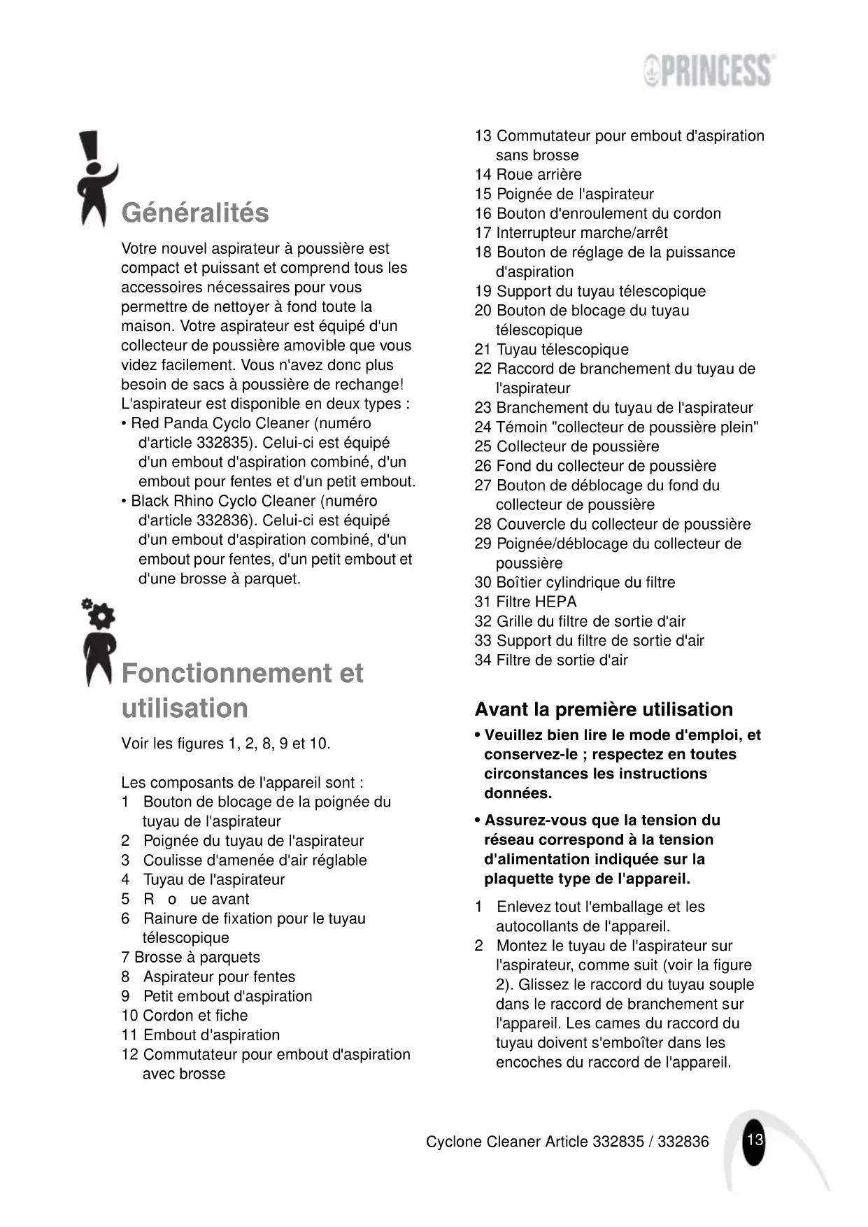 332836 - Aspirateur PRINCESS - Notice d'utilisation et mode d'emploi gratuit