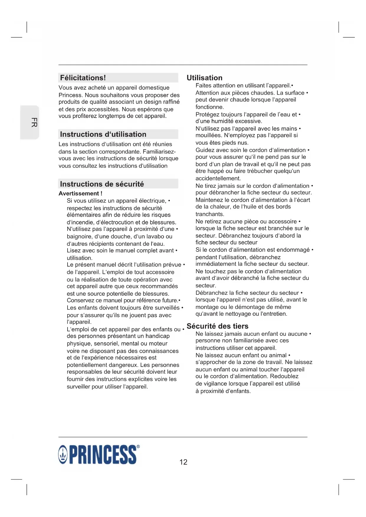 Retrouvez gratuitement la notice de l'appareil 142601 PRINCESS au format PDF.