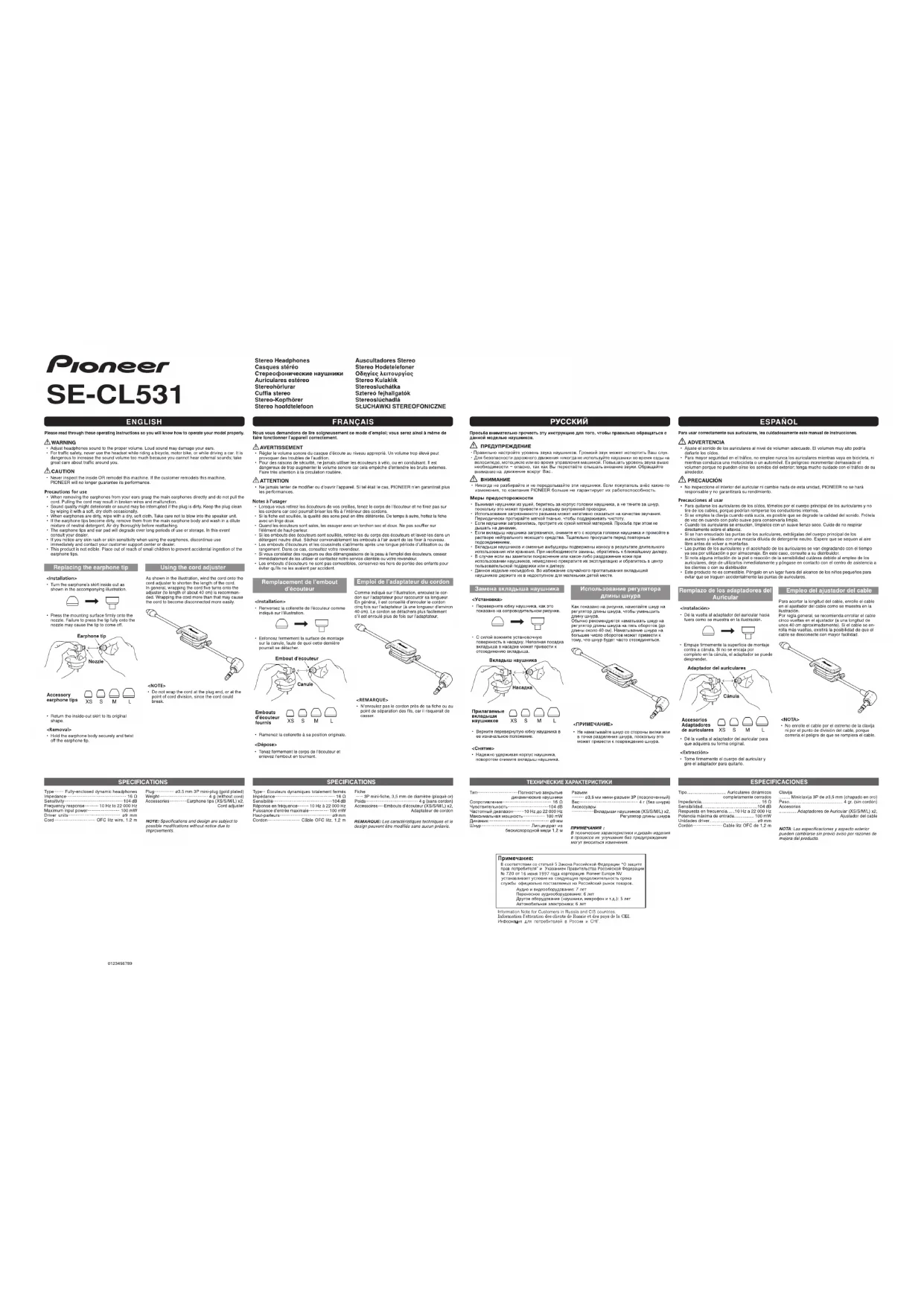 SECL531 - Ecouteur PIONEER - Notice d'utilisation et mode d'emploi gratuit
