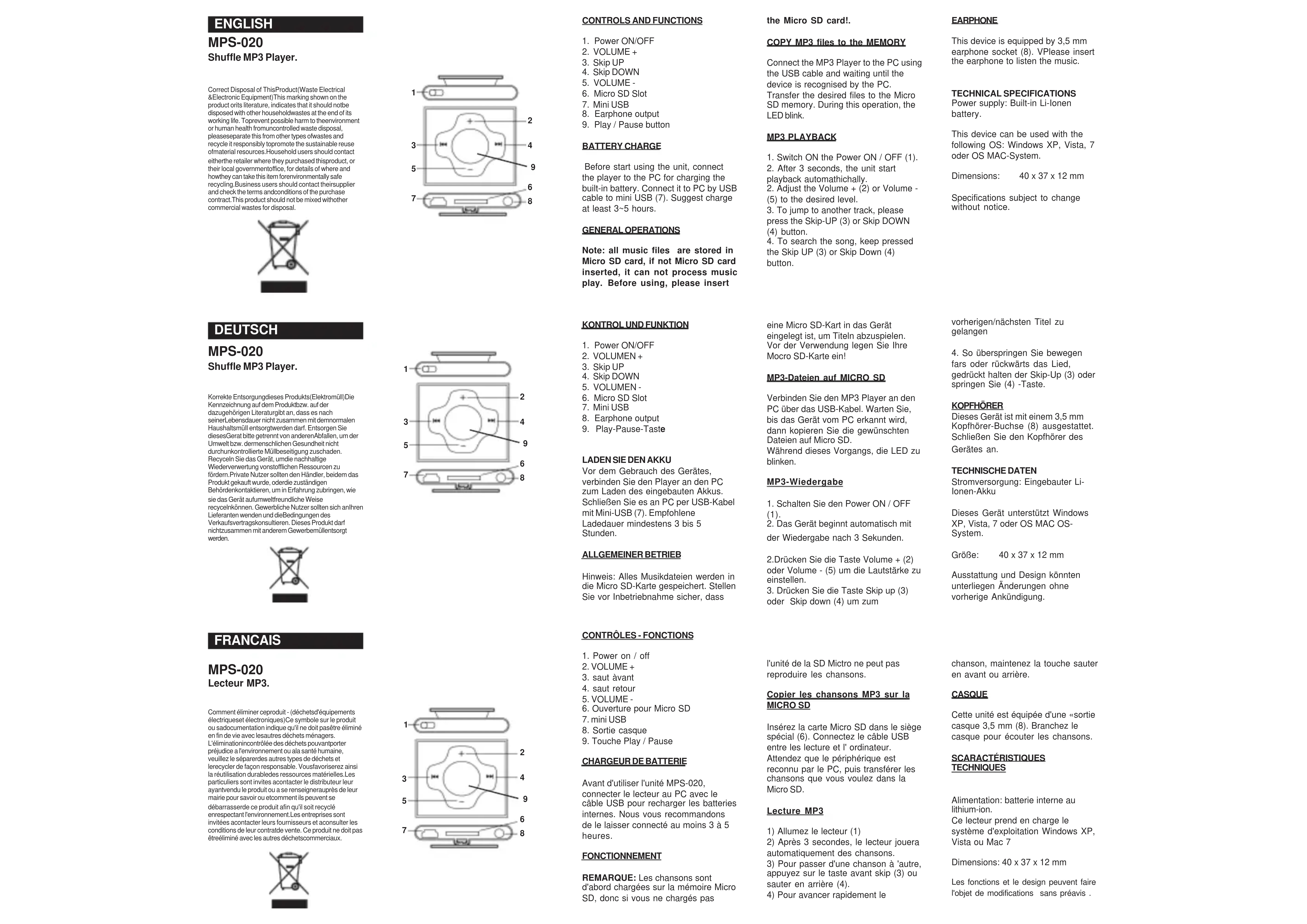 | Caractéristiques techniques | Lecteur MP3 compact, compatible avec divers formats audio (MP3, WMA). |