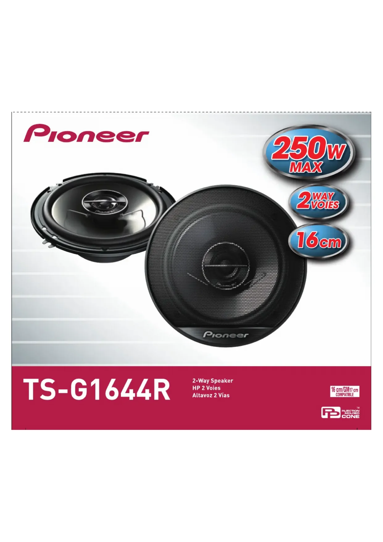 Les dimensions des haut-parleurs PIONEER TSG1644R sont de 16,5 cm de diamètre.