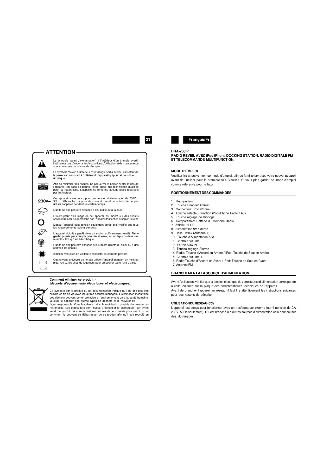HRA250IPWH - Station d'acceuil ROADSTAR - Notice d'utilisation et mode d'emploi gratuit