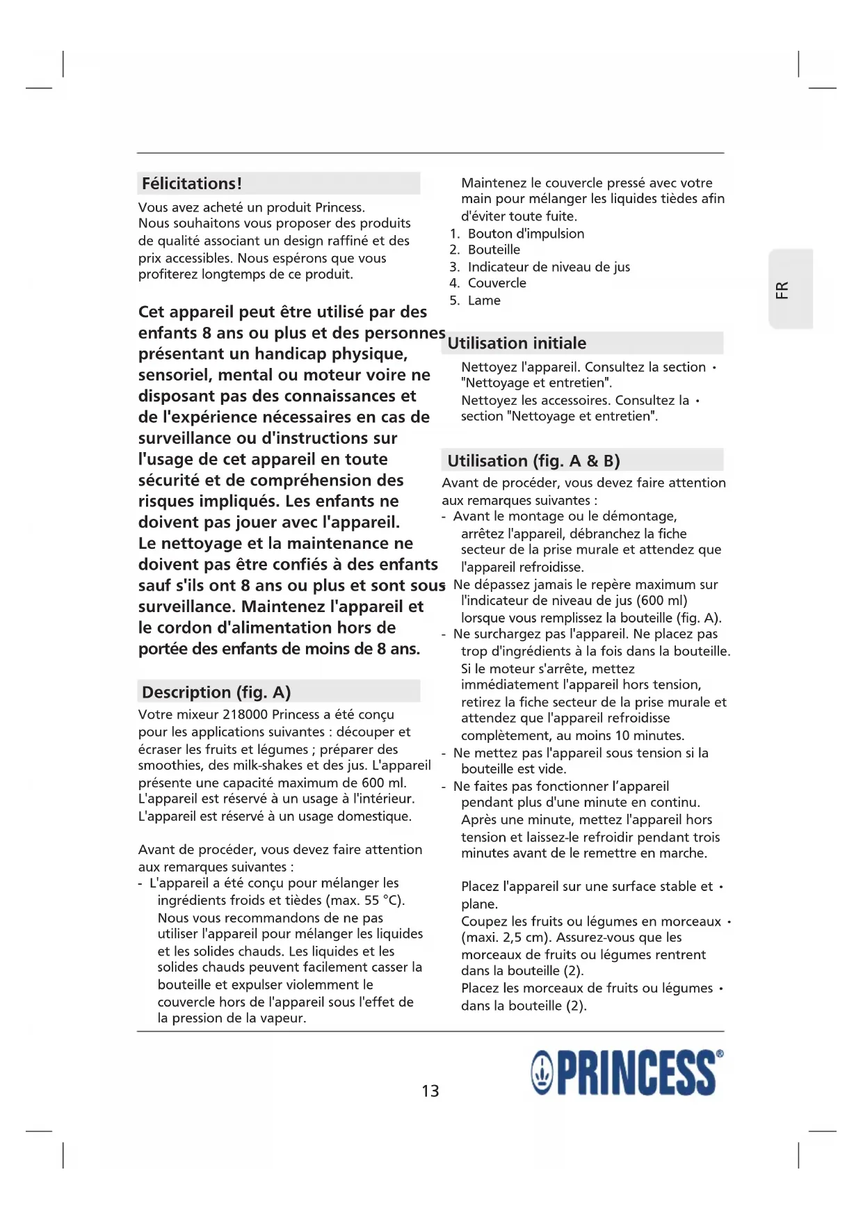 218000 - Blender PRINCESS - Notice d'utilisation et mode d'emploi gratuit
