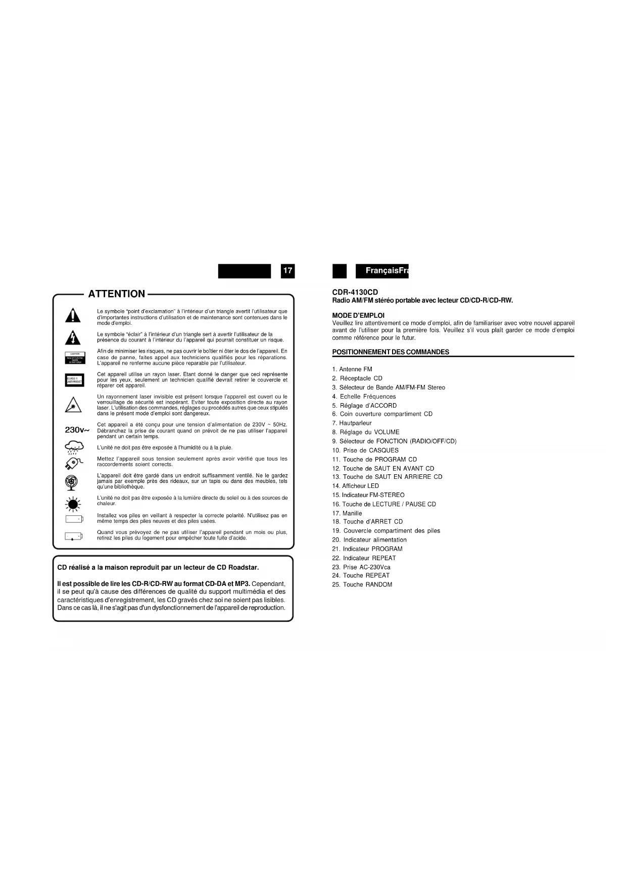 MODE D'EMPLOI CDR4130 ROADSTAR