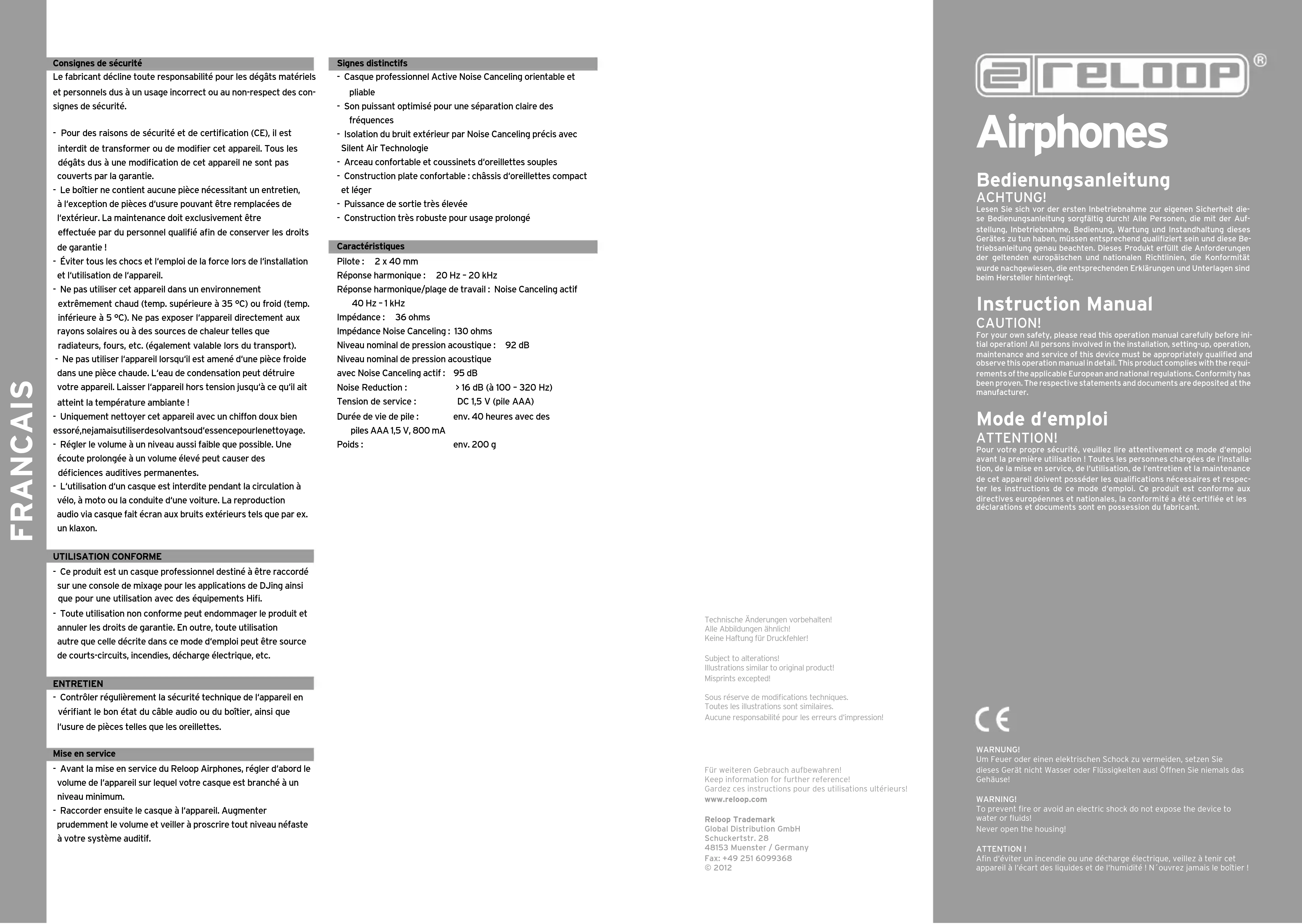 MODE D'EMPLOI Airphones Reloop