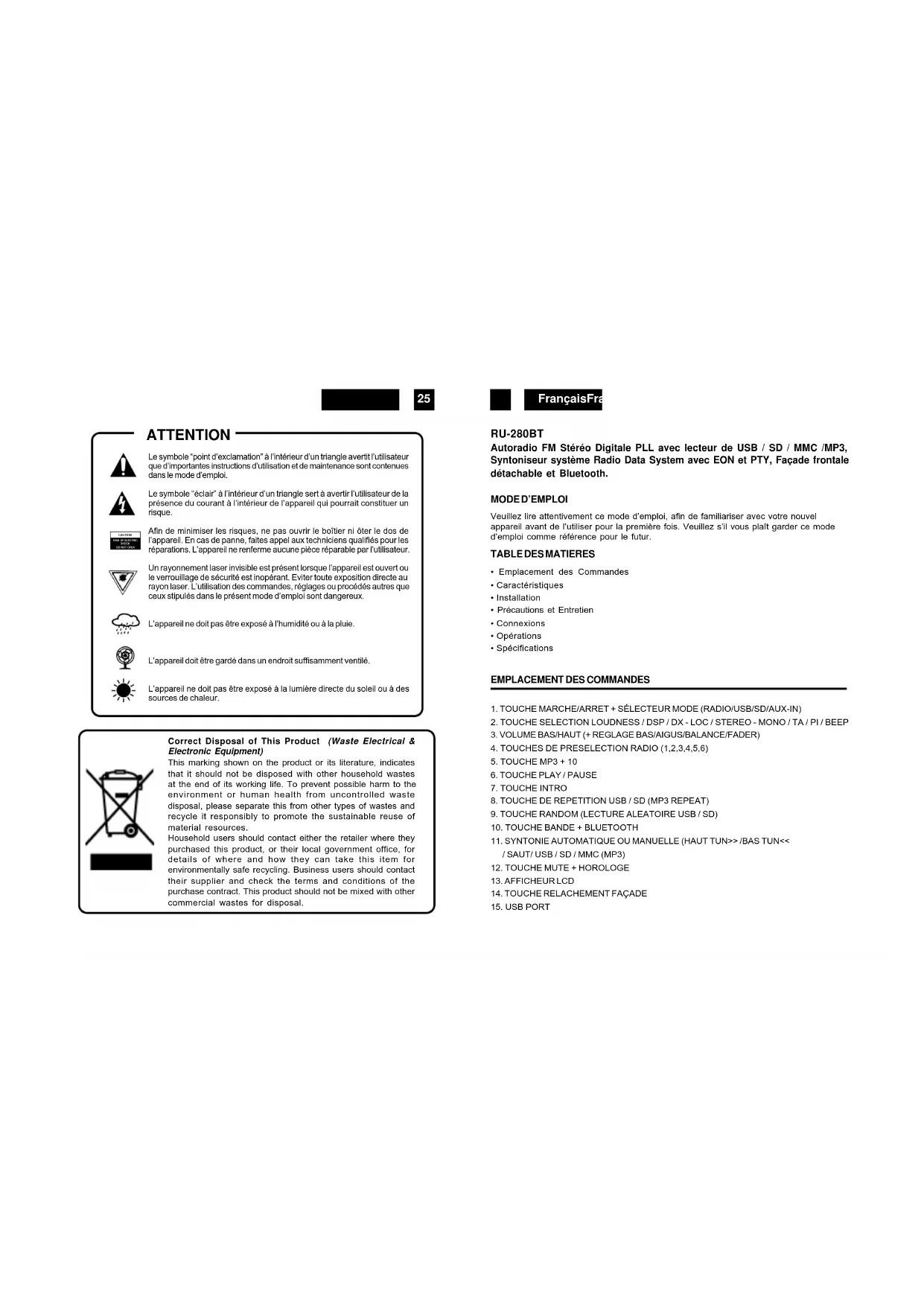 MODE D'EMPLOI RU280BT ROADSTAR
