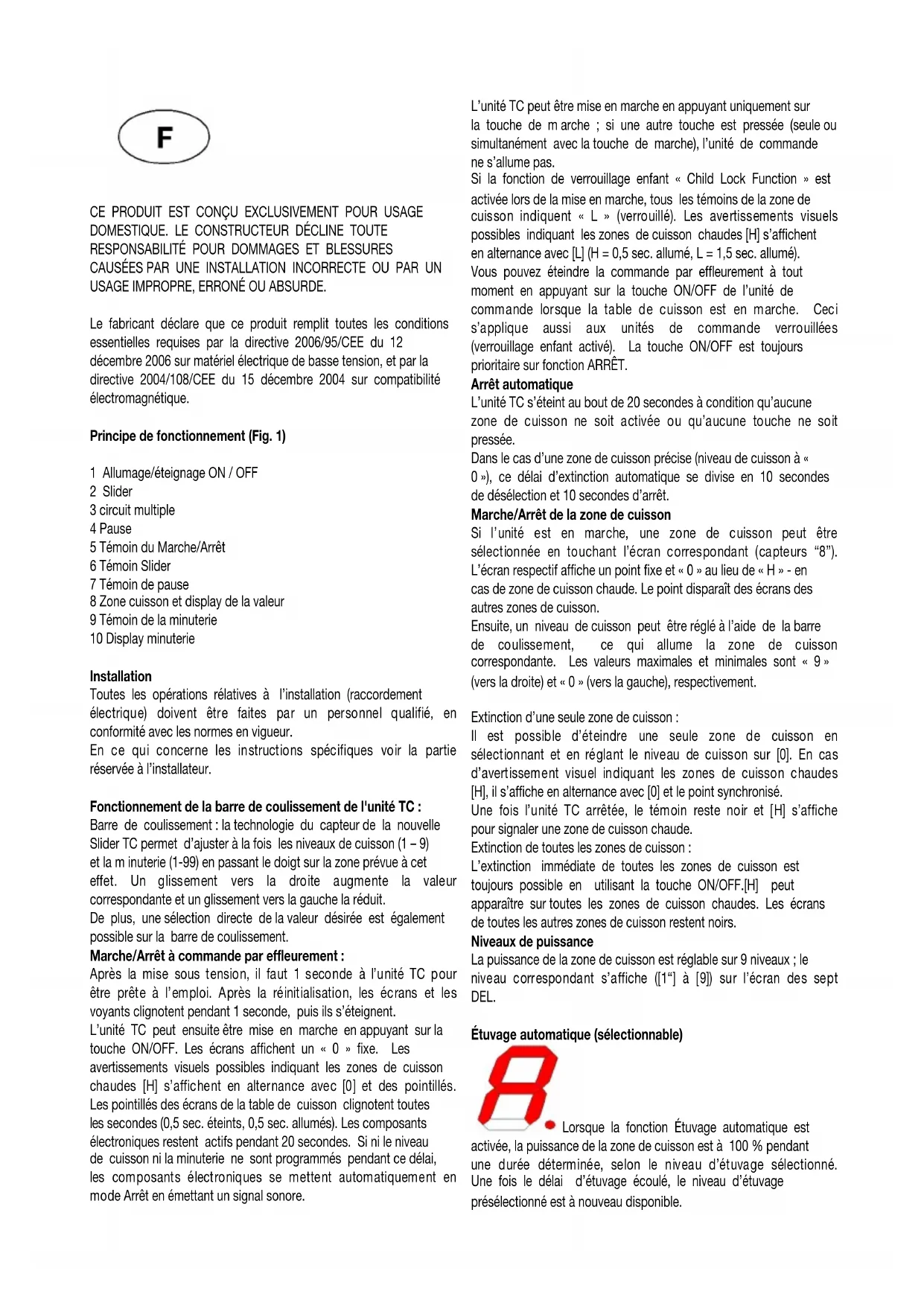 Slider TC permet d’ajuster à la fois les niveaux de cuisson (1 – 9)