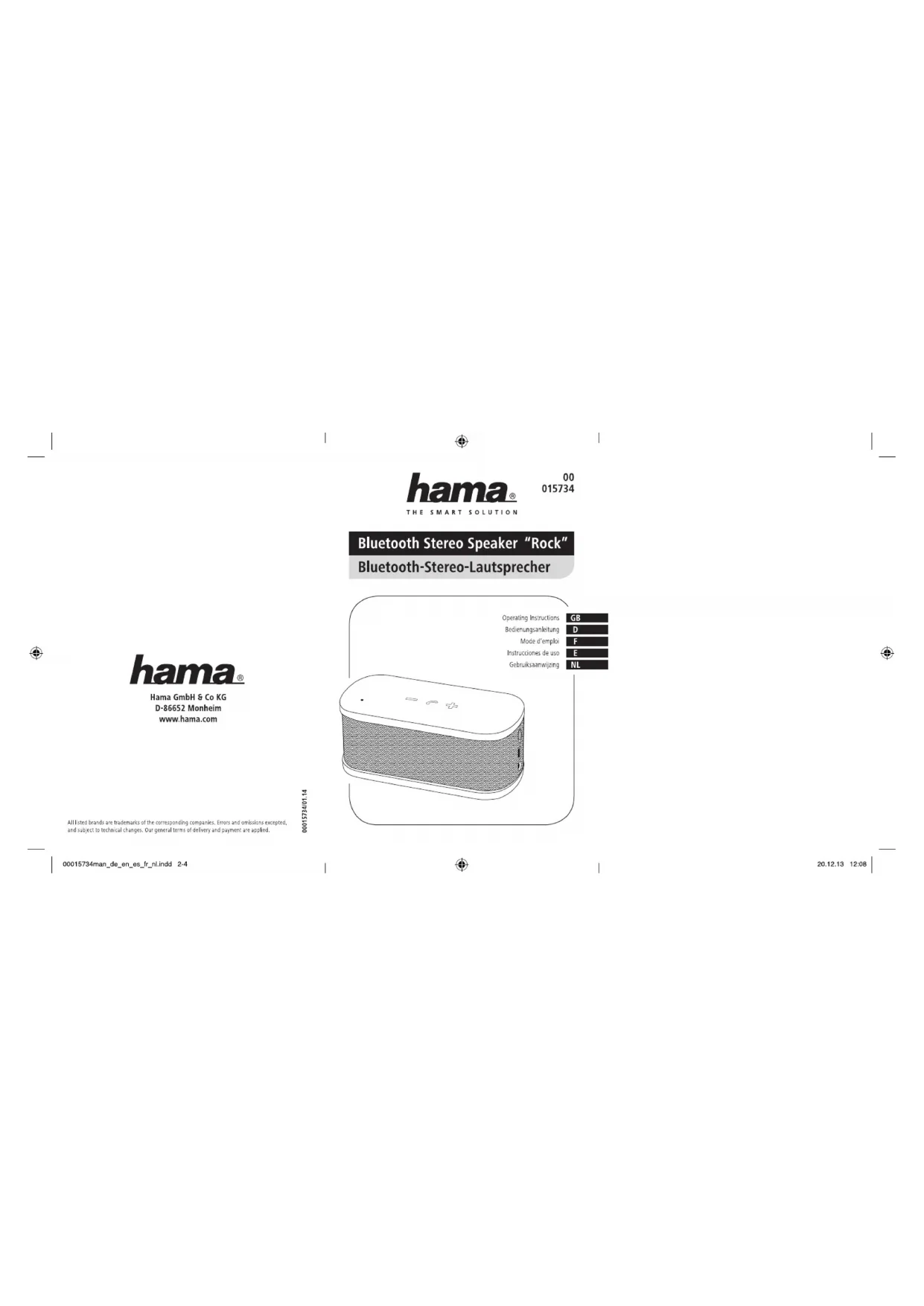 Retrouvez gratuitement la notice de l'appareil Rock HAMA au format PDF.