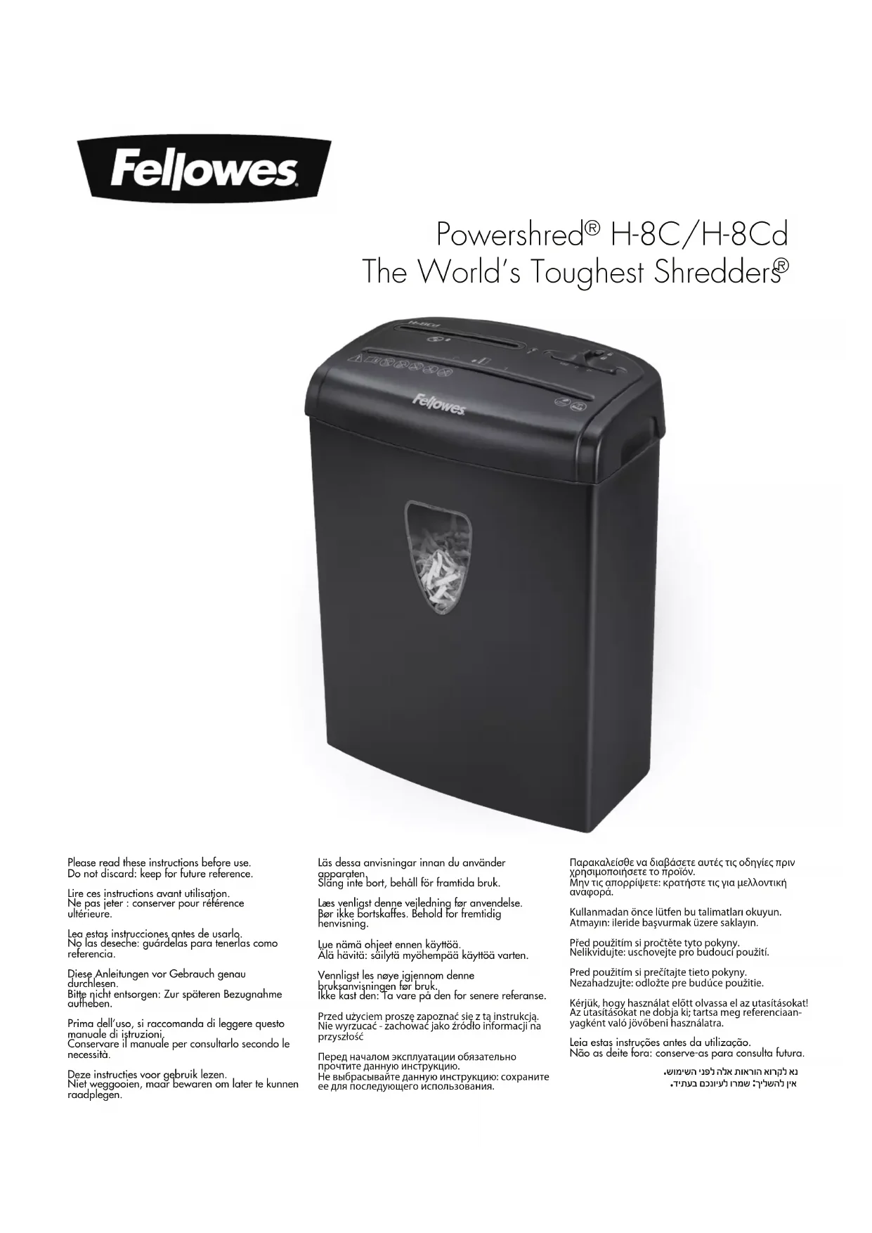 H8Cd - Destructeur de document FELLOWES - Notice d'utilisation et mode d'emploi gratuit